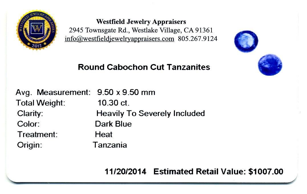 10.3ctw. Round Cabochon Cut Tanzanites. Westfield Appraised at $1,007.00.