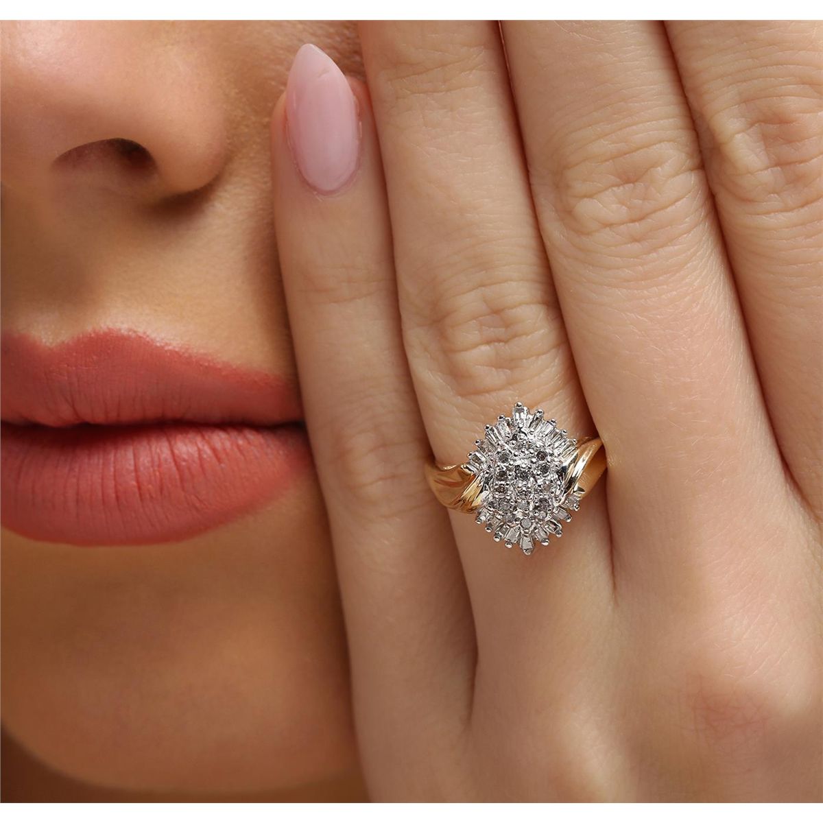 One ring featuring: 10KT two-tone gold weighing 3.60 grams containing baguette cut/round cut diamonds with a total weight of 0.35cts.
