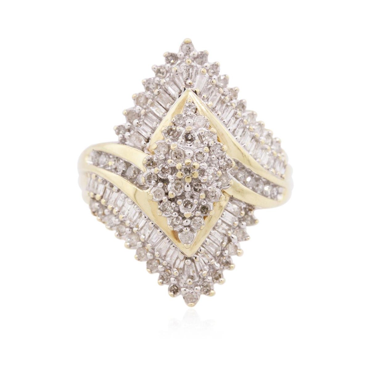 One ring featuring: 10KT yellow and white gold weighing 5.40 grams containing baguette cut/round diamonds with a total weight of 1.00cts.