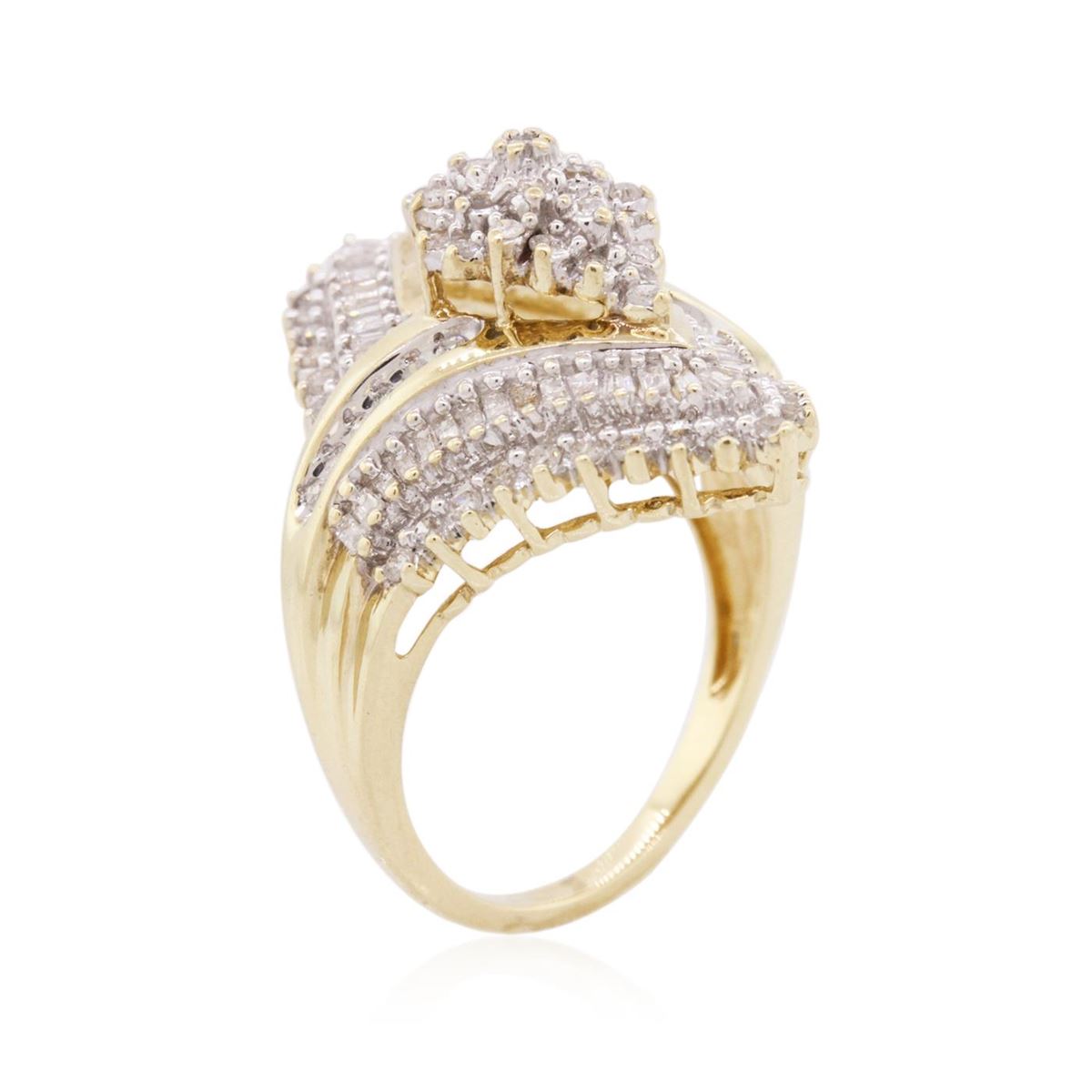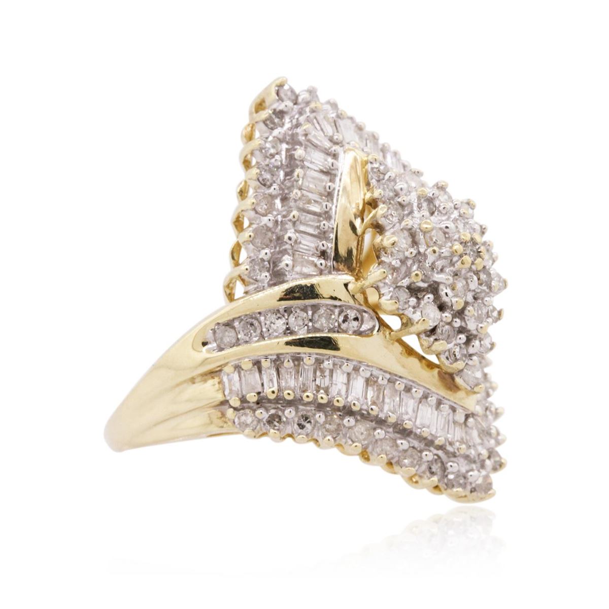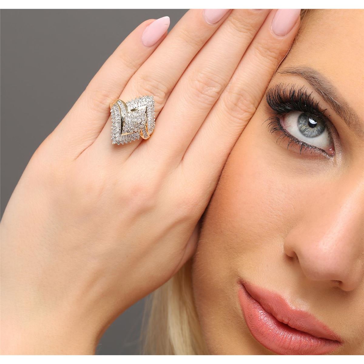One ring featuring: 10KT yellow and white gold weighing 5.40 grams containing baguette cut/round diamonds with a total weight of 1.00cts.