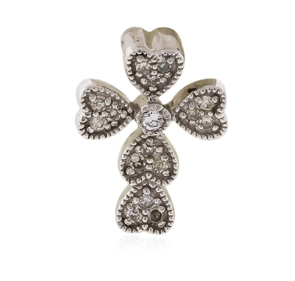 One cross pendant featuring: 10KT white gold weighing 1.10 grams containing diamonds with a total weight of 0.15ct.