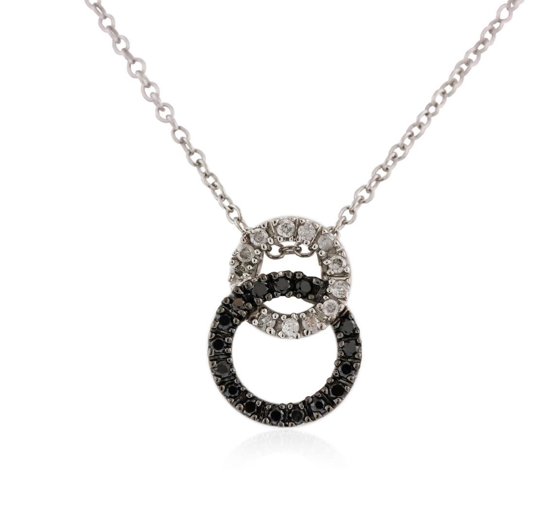 One pendant with chain featuring: 10KT white gold weighing 3.00 grams containing black diamonds with a total weight of 0.25ct and white diamonds with a total weight of 0.10ct.