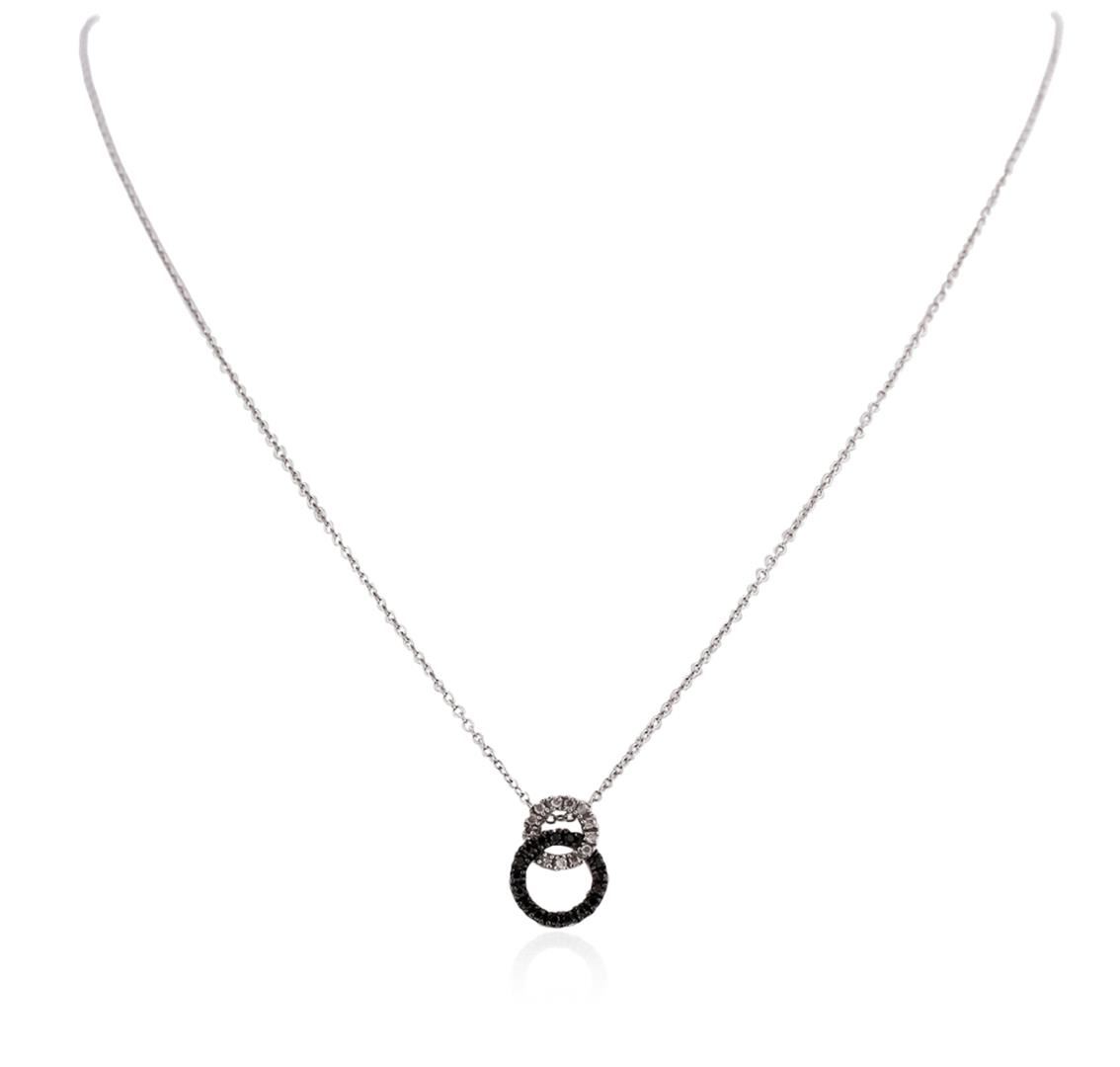 One pendant with chain featuring: 10KT white gold weighing 3.00 grams containing black diamonds with a total weight of 0.25ct and white diamonds with a total weight of 0.10ct.