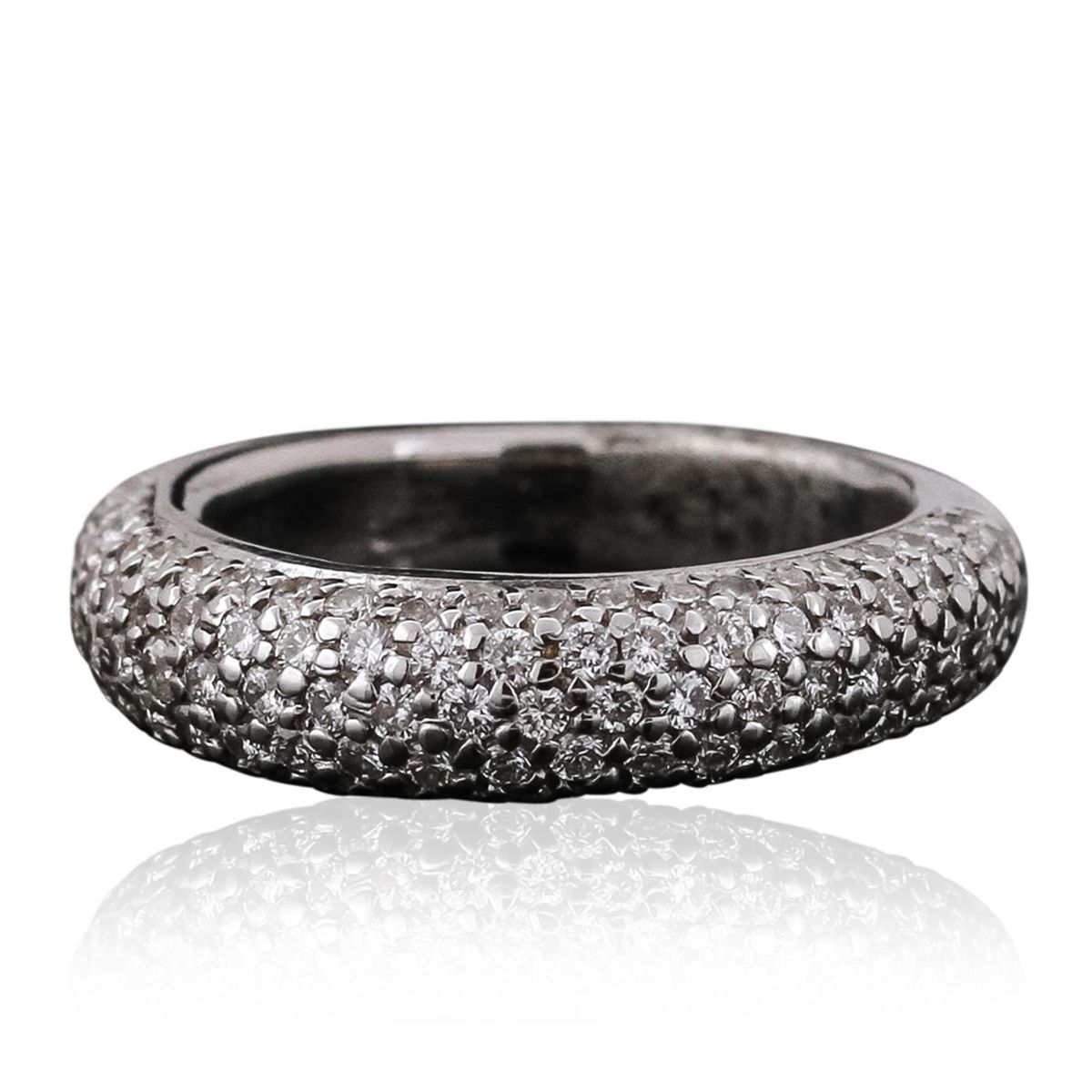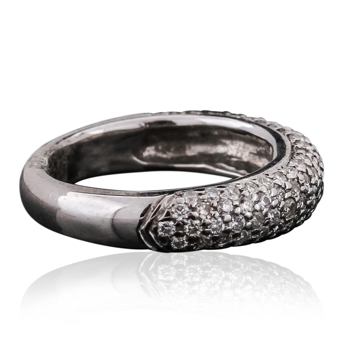 One electronically tested 10KT white gold ladies combination cast & assembled wedding ring with a bright polish finish. Condition is very good. Containing: One Hundred Nine prong set round brilliant cut diamonds, measuring 1.30 - 1.30 x 0.78mm (depth est.) approximate total weight of 109 Stones = 0.87ct. Clarity: I-1 to I-2. Color: H - I, Cut is Good. All diamonds are graded in the mounting, unless otherwise stated. Total Weight of Diamonds 0.87ct. Total Weight of Ring 6.40 grams. GGL Appraised at $3,950.00.