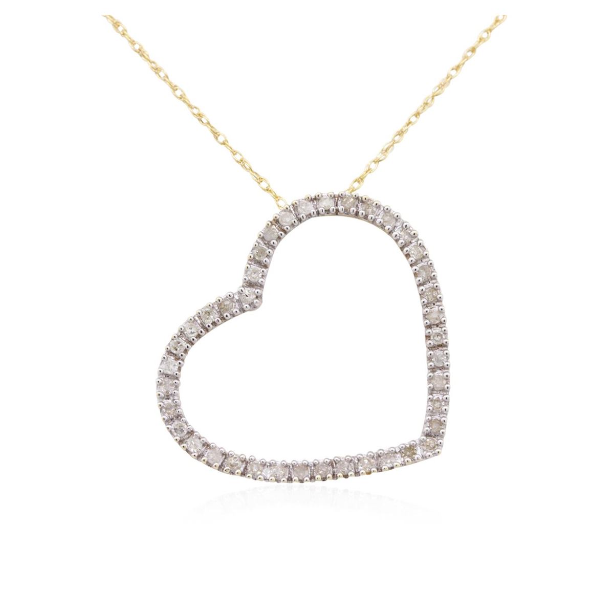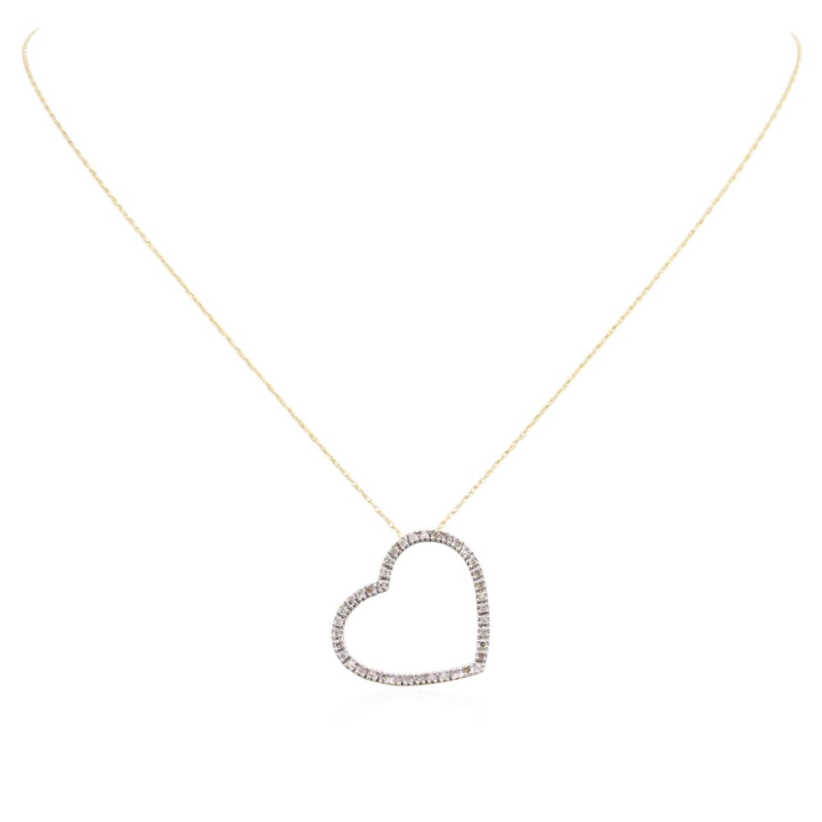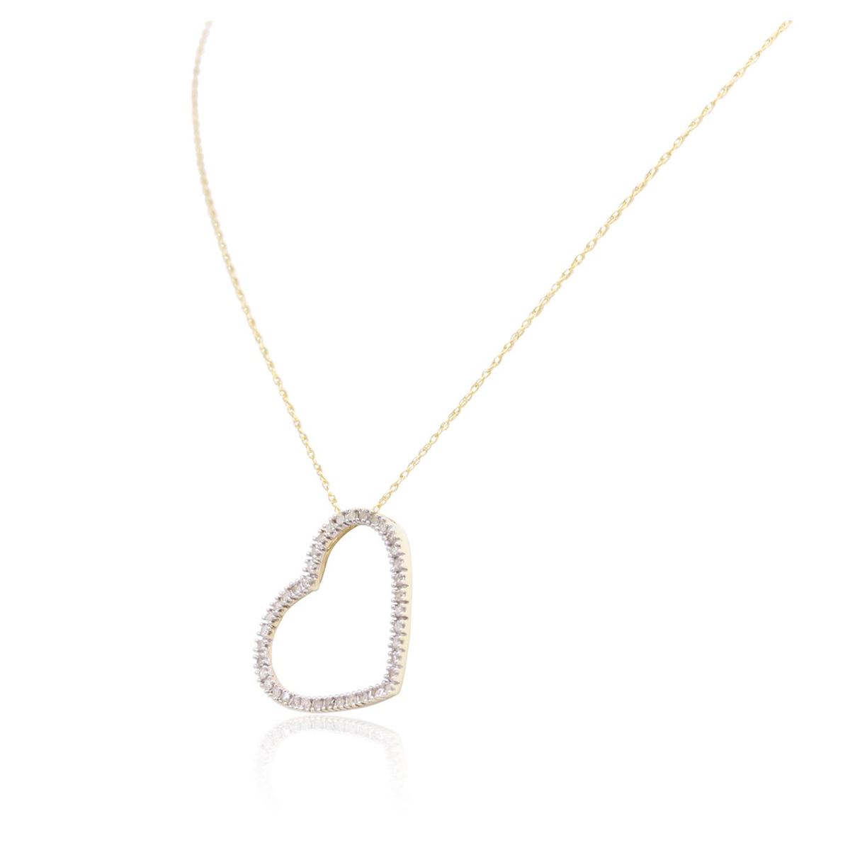 One heart pendant with chain featuring: 10KT yellow gold weighing 1.20 grams containing prong set round cut diamonds with a total weight of 0.05cts.