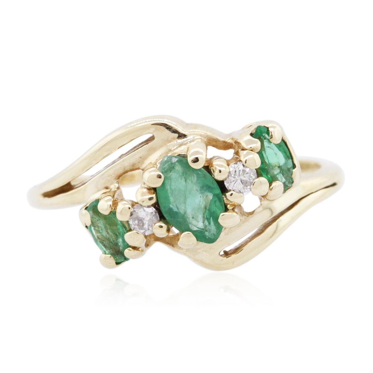 One ring featuring: 10KT yellow gold weighing 1.50 grams containing emeralds with a total weight of 0.40cts and round cut diamonds with a total weight of 0.03cts.