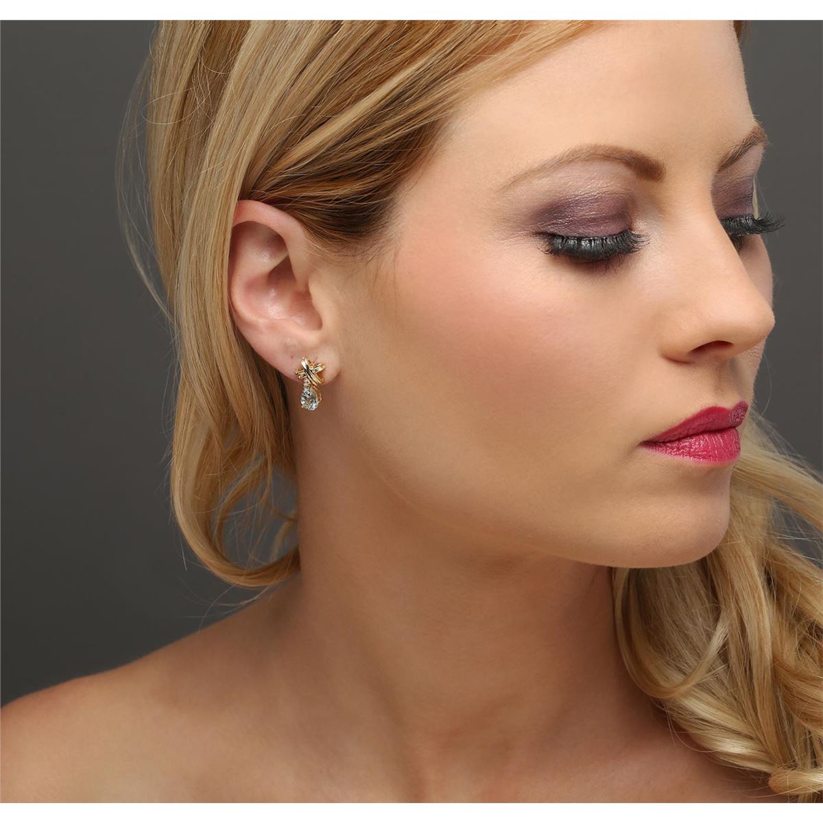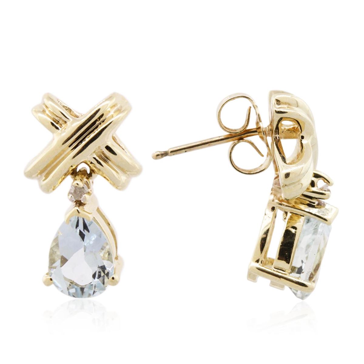One pair of earrings featuring: 10KT yellow gold weighing 2.70 grams containing two aquamarines with a total weight of 1.00cts and round diamonds with a total weight of 0.02cts.