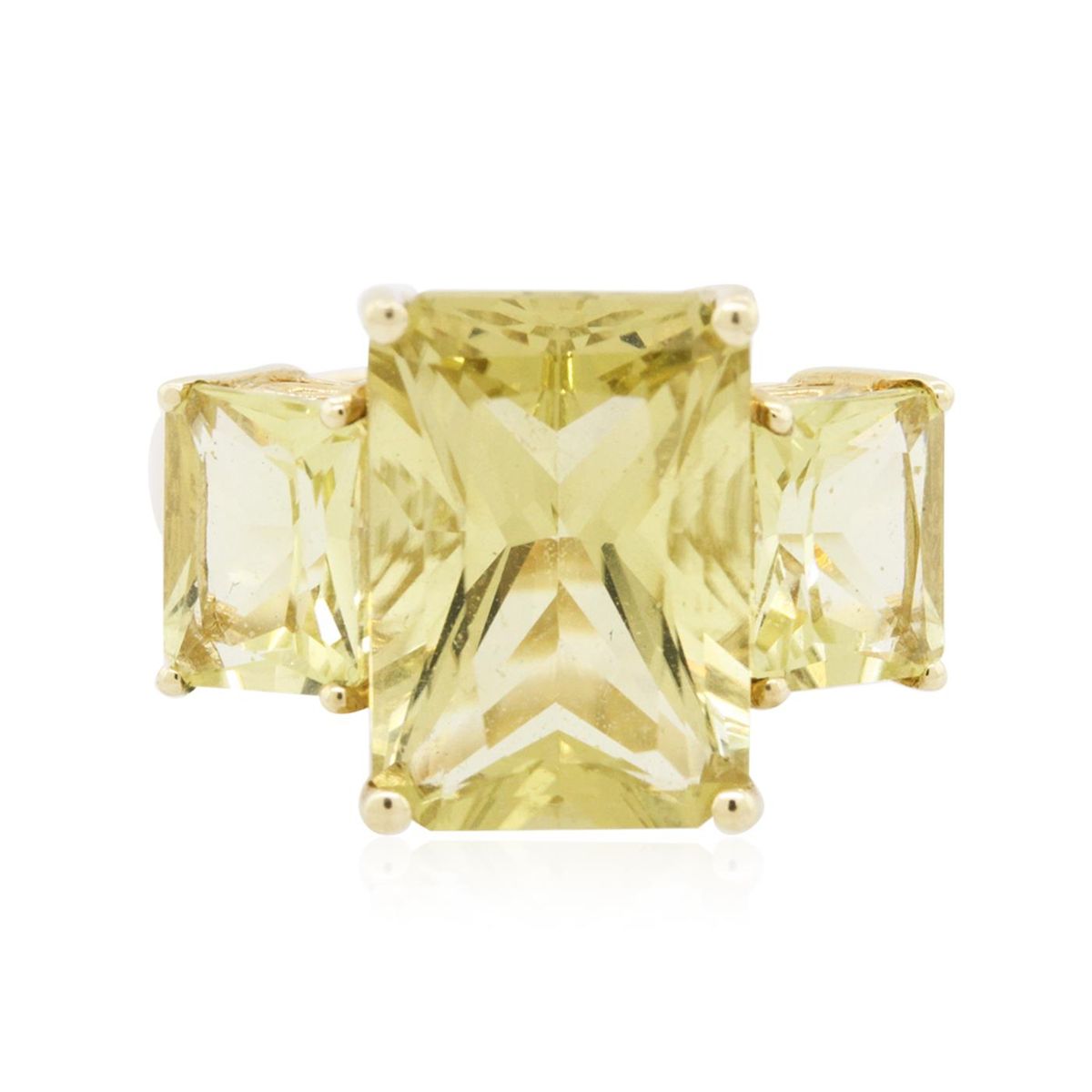 One ring featuring: 10KT yellow gold weighing 6.00 grams containing three lemon quartz center stones with a total weight of 11.97ct.