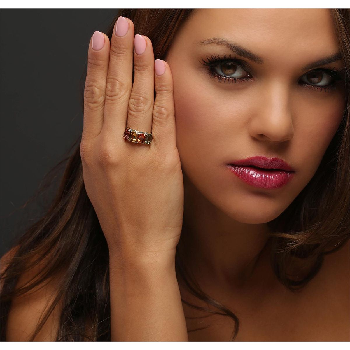 One ring featuring: 10KT yellow gold weighing 2.50 grams containing four multi colored tourmalines with a total weight of 4.97cts and six round cut diamonds with a total weight of 0.04cts.