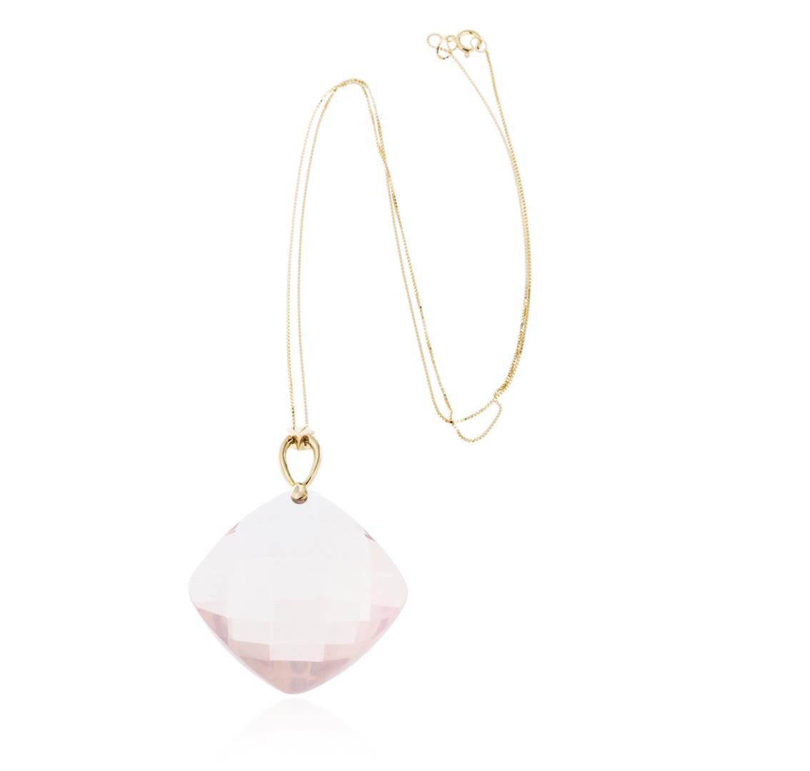 One pendant with chain featuring: 10KT yellow gold weighing 1.30 grams containing one rose quartz with a total weight of 58.10ct.