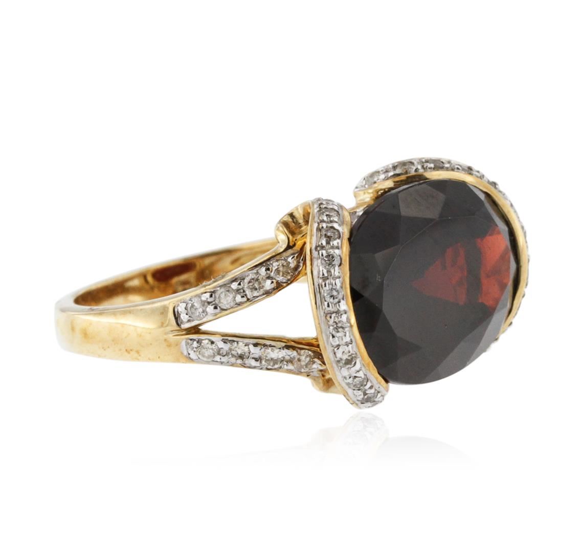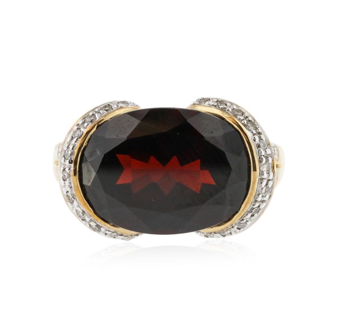 One ring featuring: 10KT yellow gold weighing 4.26 grams containing one garnet with a total weight of 9.55ct and 46 round diamonds with a total weight of 0.36ct.