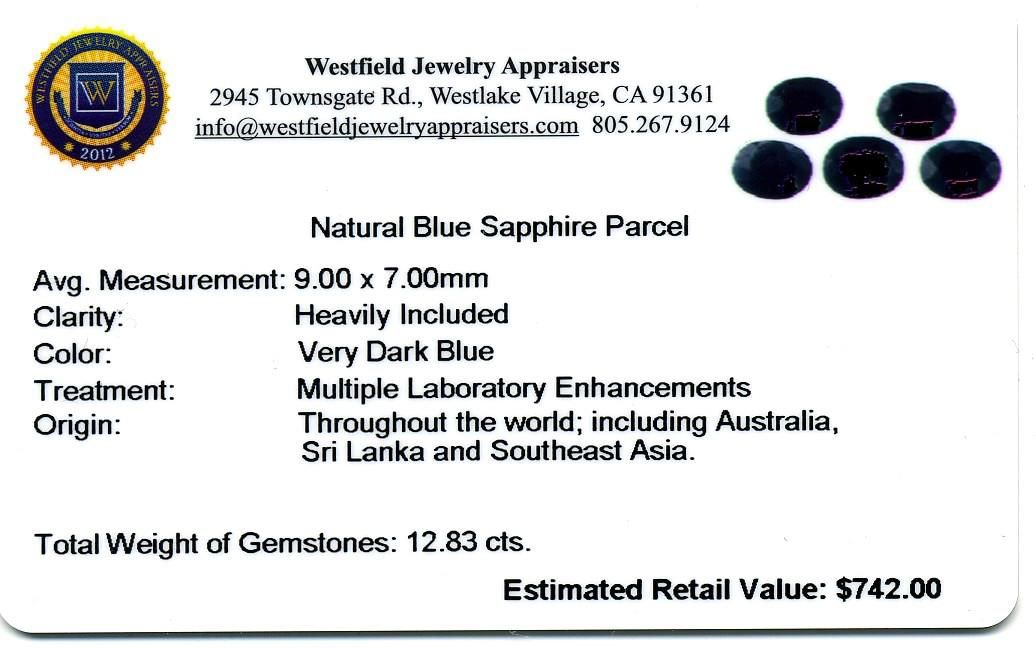 12.83cts Oval Cut Natural Blue Sapphire Parcel. Westfield Appraised at $742.