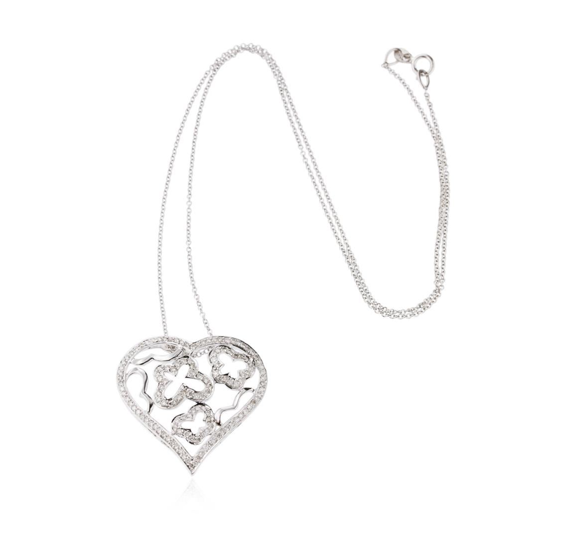 One pendant with chain featuring: 18KT white gold pendant with 14KT white gold chain weighing 4.21 grams containing diamonds with a total weight of 0.56ct.