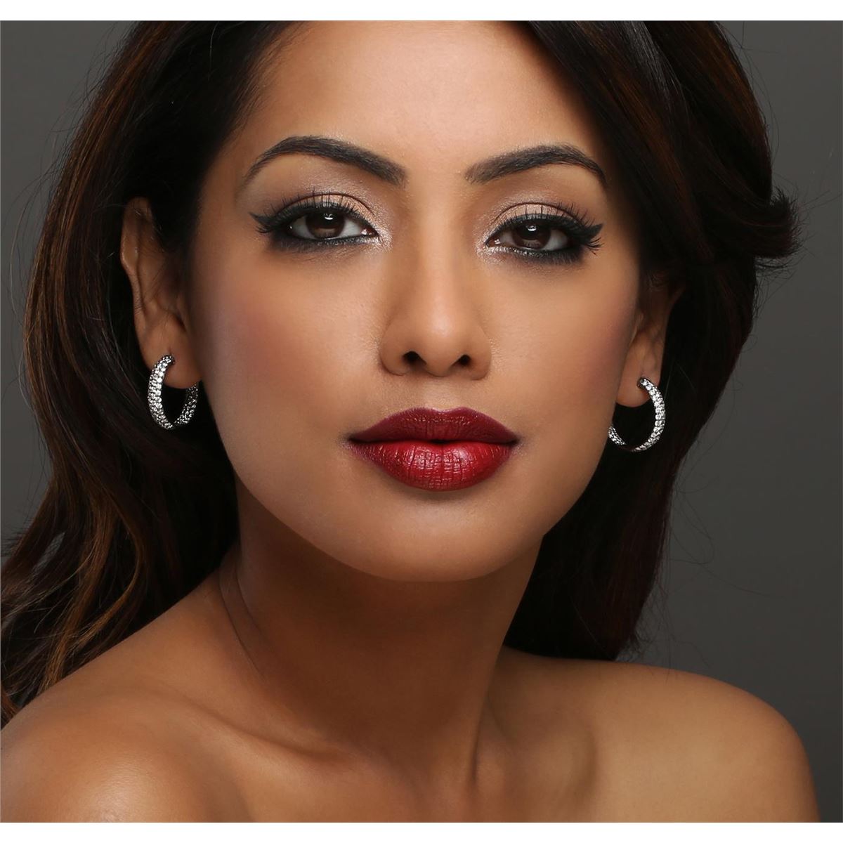 One pair electronically tested 14KT black ladies combination cast & assembled diamond hoop earrings with hinged clip backs with a satin finish. Identified with markings of "14K". Condition is new. Containing: One Hundred Sixty-Six prong set round brilliant cut diamonds, measuring 1.50 - 1.50 x 0.90mm (depth est.) approximate total weight of 166 Stones = 2.04ct. Clarity: SI-2 to I-2. Color: H - I, Cut is Good. All diamonds are graded in the mounting, unless otherwise stated. Total Weight of Diamonds 2.04ct. Total Weight of Earrings 7.40 grams. GGL Appraised at $7,930.00.