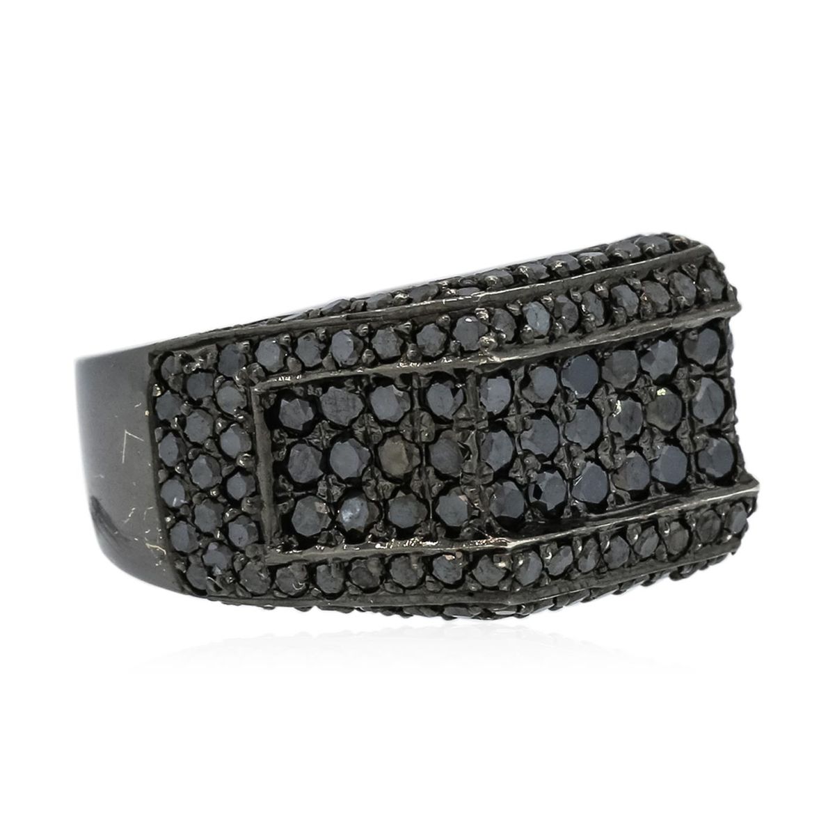 One electronically tested 14KT black gold men's combination cast & assembled diamond ring with a bright polish finish. Identified with markings of "14K". Condition is new. Containing: One Hundred Sixty-Five prong set round brilliant cut diamonds, measuring 2.00 - 1.50 x 1.05mm (depth est.) approximate total weight of 165 Stones = 2.40ct. Cut is Good. All diamonds are graded in the mounting, unless otherwise stated. Total Weight of Diamonds 2.40ct. Total Weight of Ring 13.50 grams. GGL Appraised at $5,410.00.