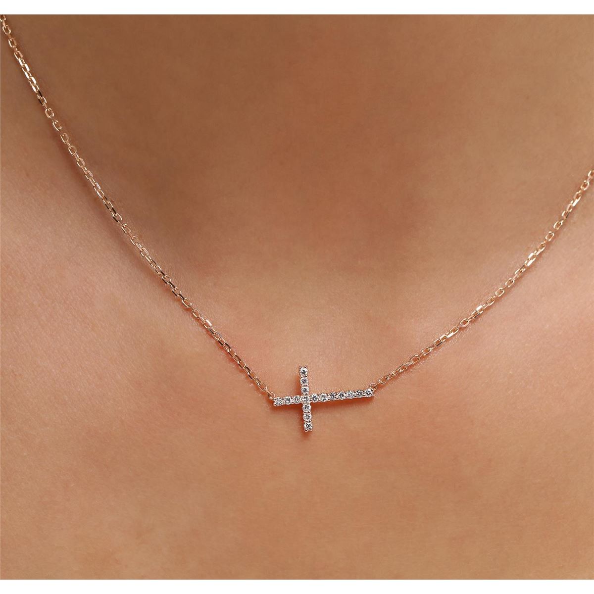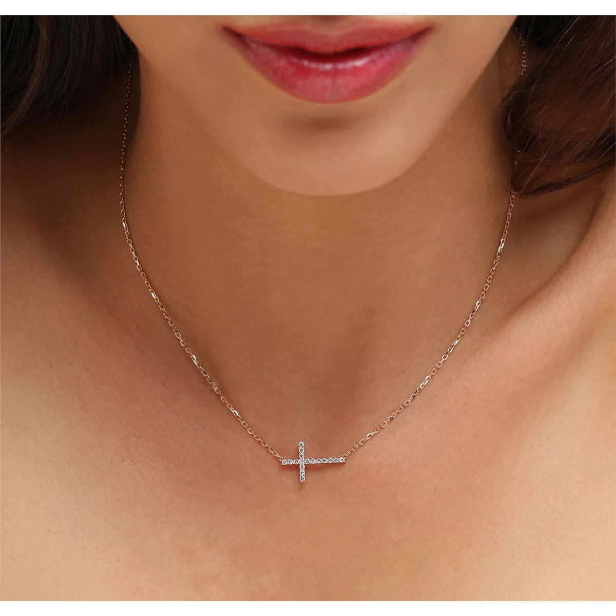 One cross necklace featuring: 14KT rose gold weighing 2.60 grams containing round diamonds with a total weight of 0.32cts.
