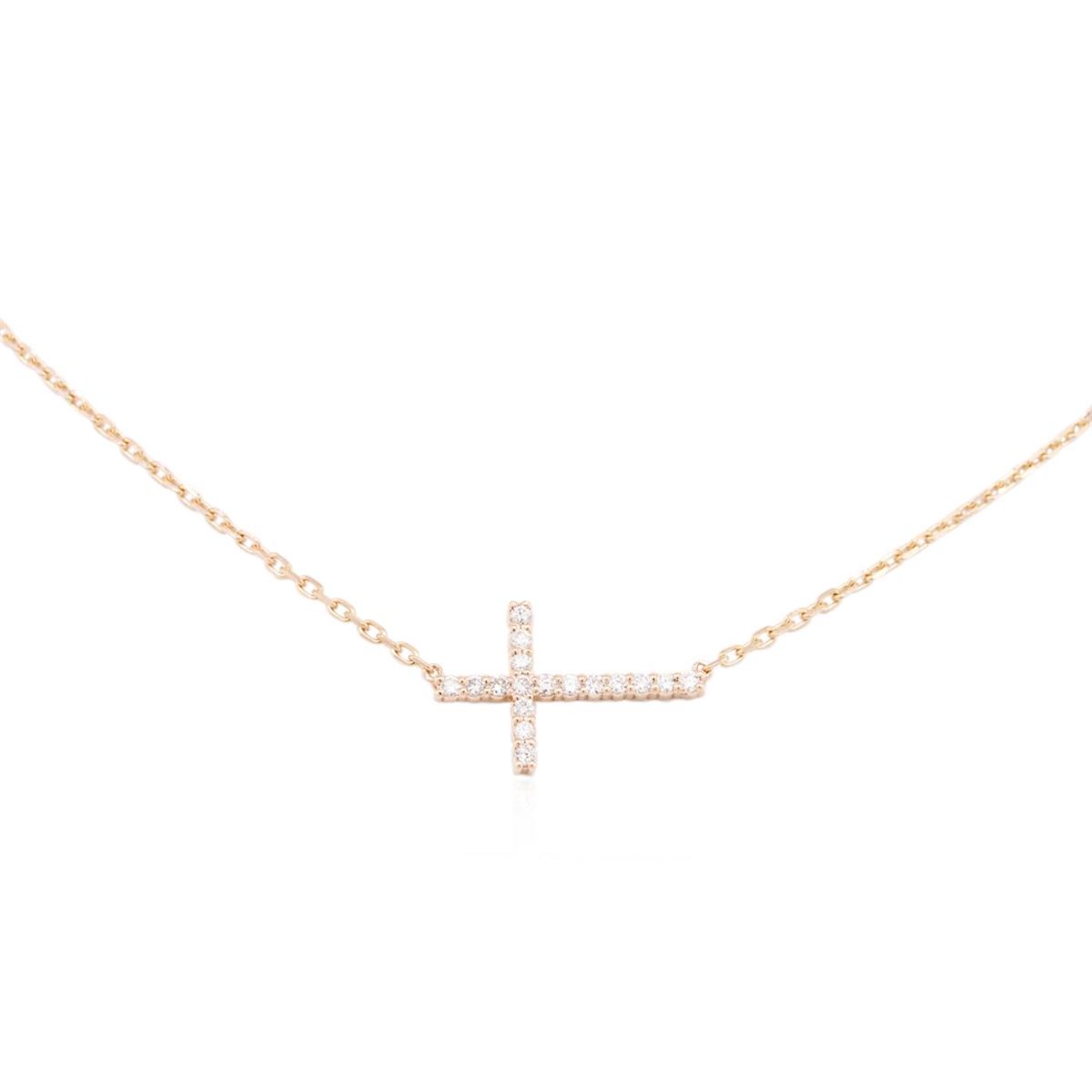 One cross necklace featuring: 14KT rose gold weighing 2.60 grams containing round diamonds with a total weight of 0.32cts.