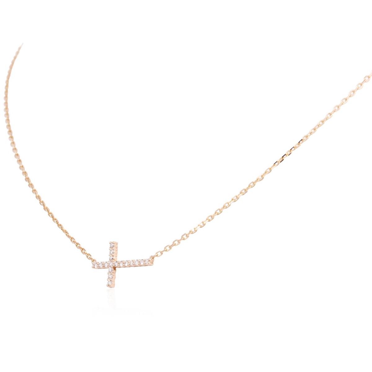 One cross necklace featuring: 14KT rose gold weighing 2.60 grams containing round diamonds with a total weight of 0.32cts.