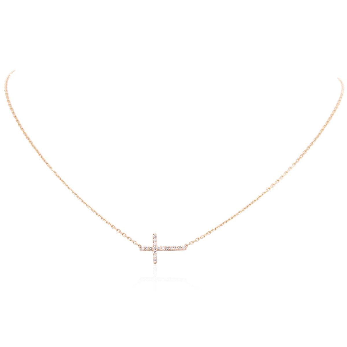 One cross necklace featuring: 14KT rose gold weighing 2.60 grams containing round diamonds with a total weight of 0.32cts.
