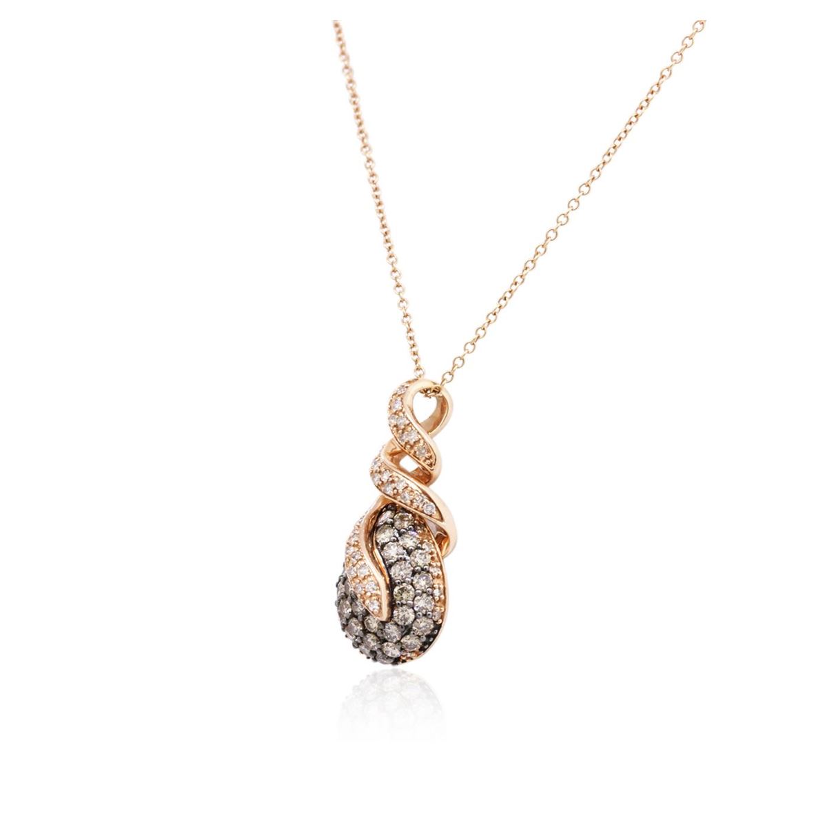 One electronically tested 14KT rose gold ladies combination cast & assembled diamond pendant & chain 18.0" long, cable link with a spring ring clasp with a bright polish finish. Identified with markings of "585". Condition is new. Containing: Twenty-Seven prong set single cut diamonds, measuring 1.00. - 1.00. x 0.60mm (depth est.) approximate total weight of 27 Stones = 0.10ct. Clarity: SI-1 to SI-2. Color: I - J, Cut is Good. Thirty-Nine prong set round brilliant cut diamonds, measuring 2.20 - 1.00. x 0.96mm (depth est.) approximate total weight of 39 Stones = 0.40ct. Clarity: SI-2 to I-1, Cut is Good. All diamonds are graded in the mounting, unless otherwise stated. Total Weight of Diamonds 0.50ct. Total Weight of Pendant & Chain 5.80 grams. GGL Appraised at $3,525.00.