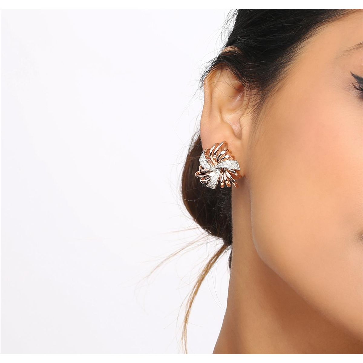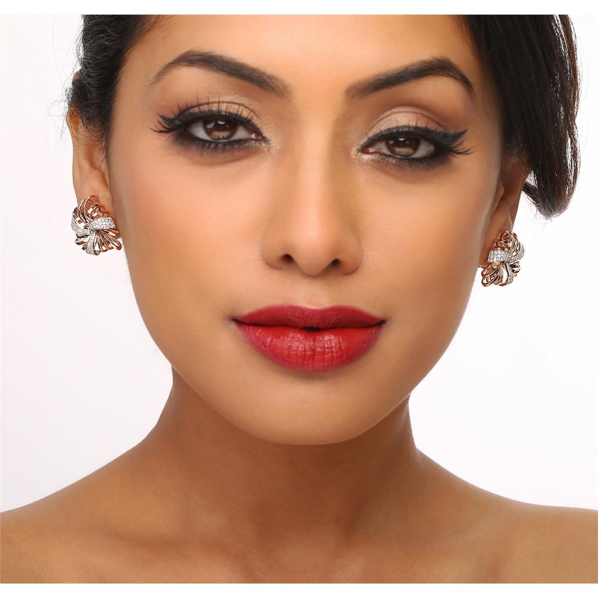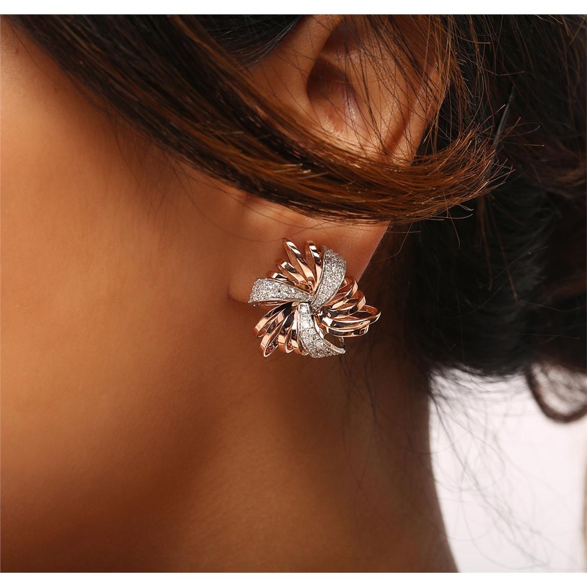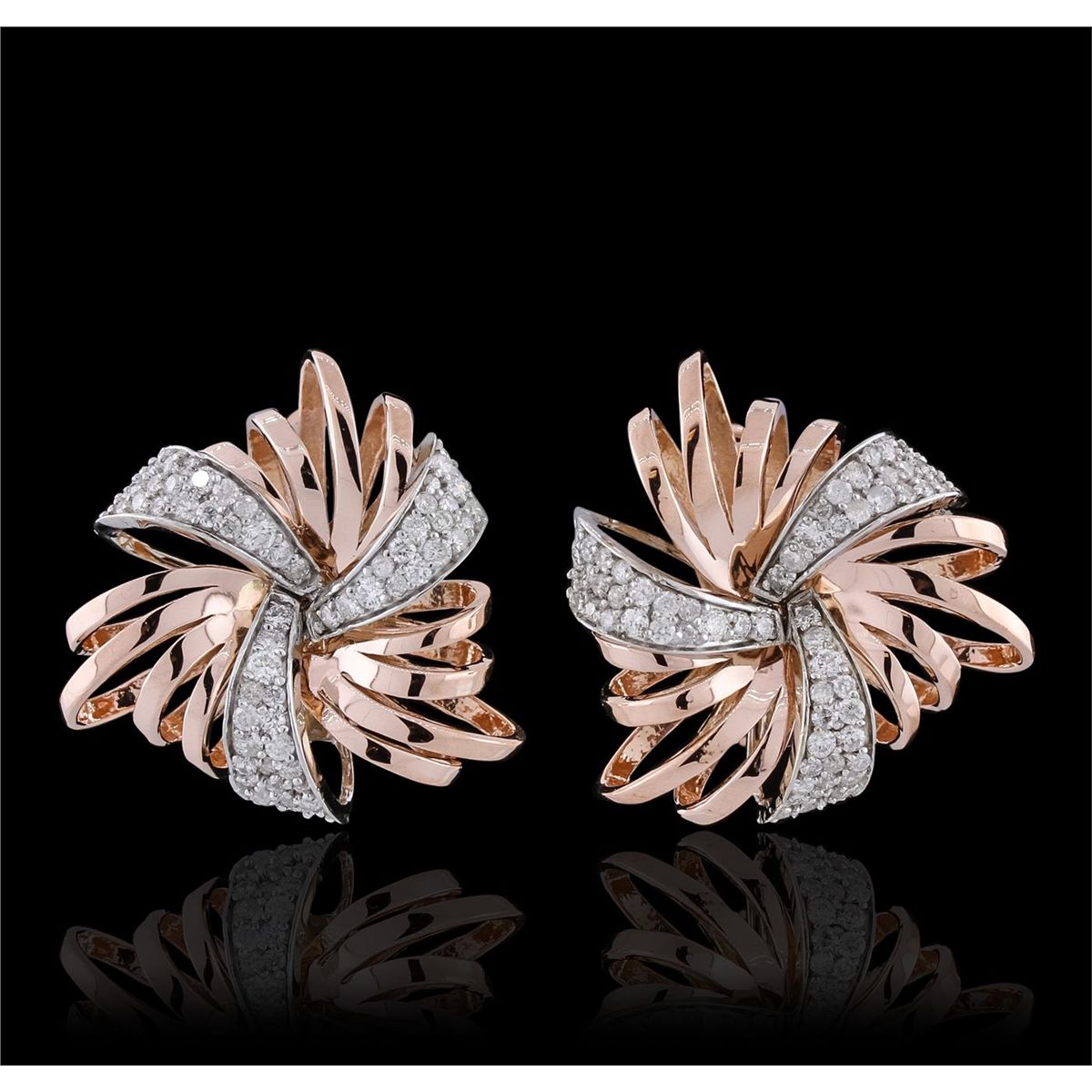 One pair electronically tested 14KT rose gold ladies combination cast & assembled earrings with Omega clip backs with posts with a bright polish finish. Condition is new. Identified with markings of "K14". Containing: Sixty-Three prong set round brilliant cut diamonds, measuring 1.30 - 1.30 x 0.78mm (depth est.) approximate. Total Weight of 63 Stones = 0.50ct. Clarity: I-1 to I-2. Color: H - I, Cut is Good. Colored gemstones are presumed to have been subjected to commonly used enhancement processes. All diamonds and colored gemstones are graded in the mounting, unless otherwise stated. Total Weight of Diamonds 0.50ct. Total Weight of Earrings 11.40 grams. GGL Appraised at $5,470.00.