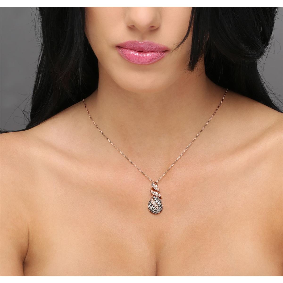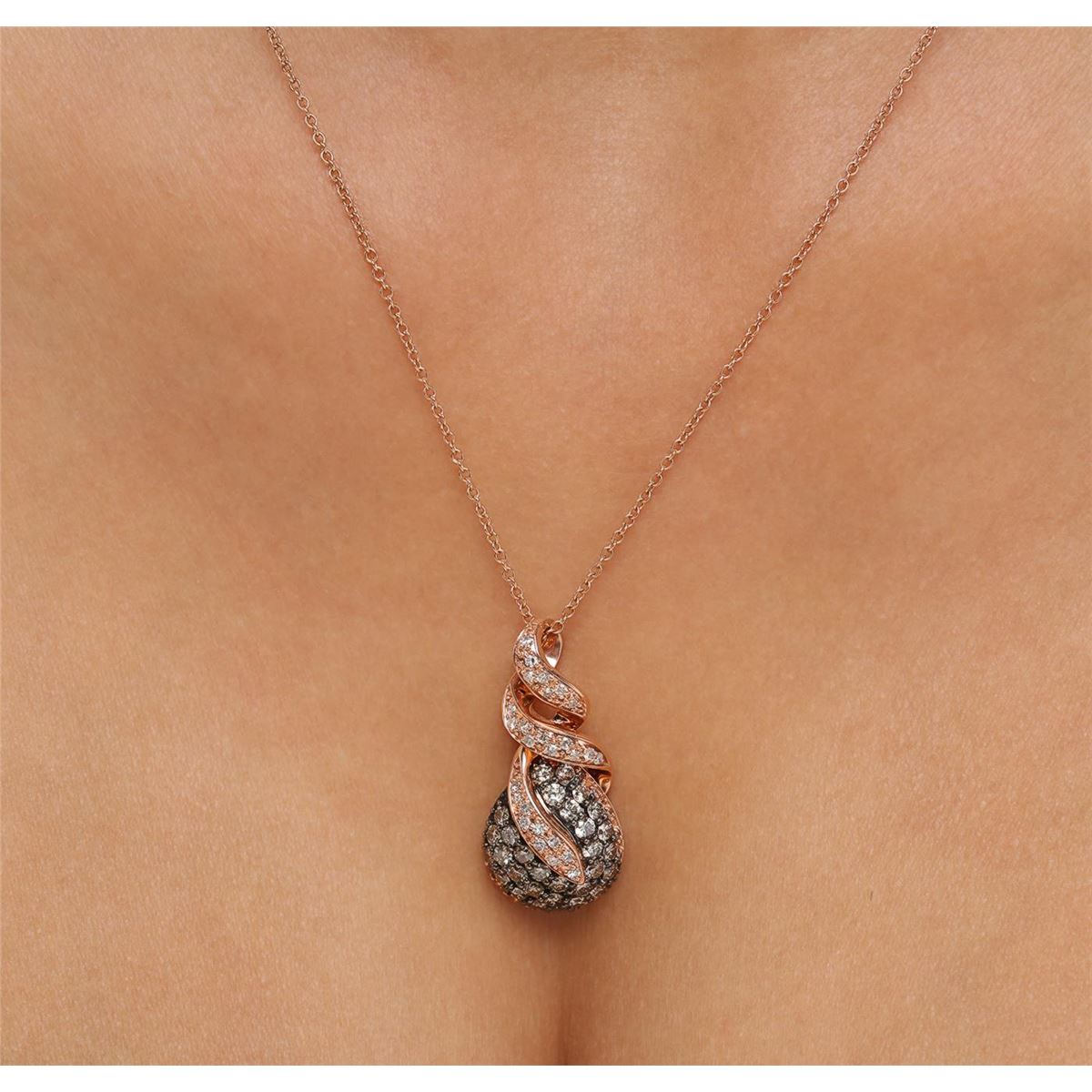 One electronically tested 14KT rose gold ladies combination cast & assembled diamond pendant & chain 18.0" long, cable link with a spring ring clasp with a bright polish finish. Identified with markings of "585". Condition is new. Containing: Twenty-Seven prong set single cut diamonds, measuring 1.00. - 1.00. x 0.60mm (depth est.) approximate total weight of 27 Stones = 0.10ct. Clarity: SI-1 to SI-2. Color: I - J, Cut is Good. Thirty-Nine prong set round brilliant cut diamonds, measuring 2.20 - 1.00. x 0.96mm (depth est.) approximate total weight of 39 Stones = 0.40ct. Clarity: SI-2 to I-1, Cut is Good. All diamonds are graded in the mounting, unless otherwise stated. Total Weight of Diamonds 0.50ct. Total Weight of Pendant & Chain 5.80 grams. GGL Appraised at $3,525.00.