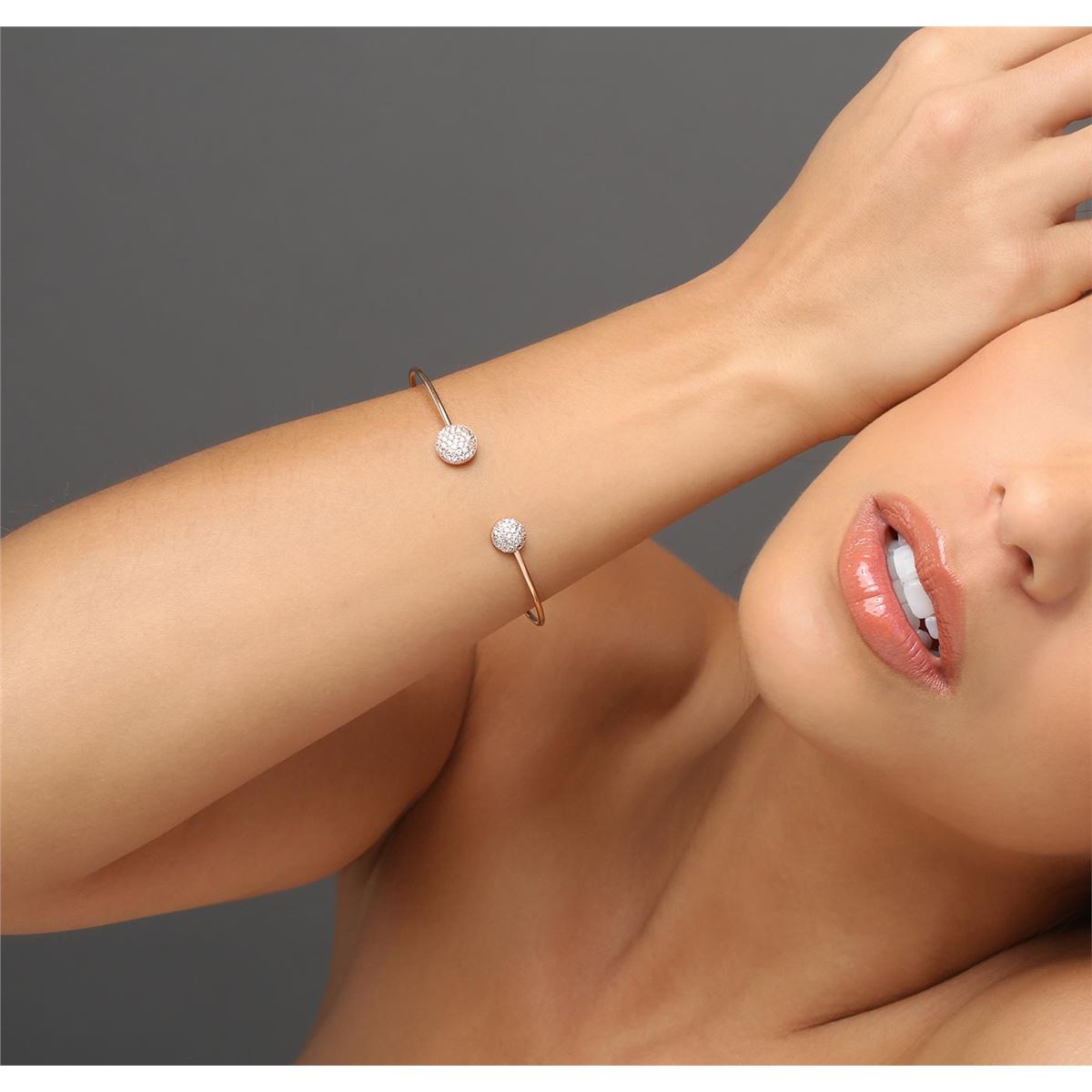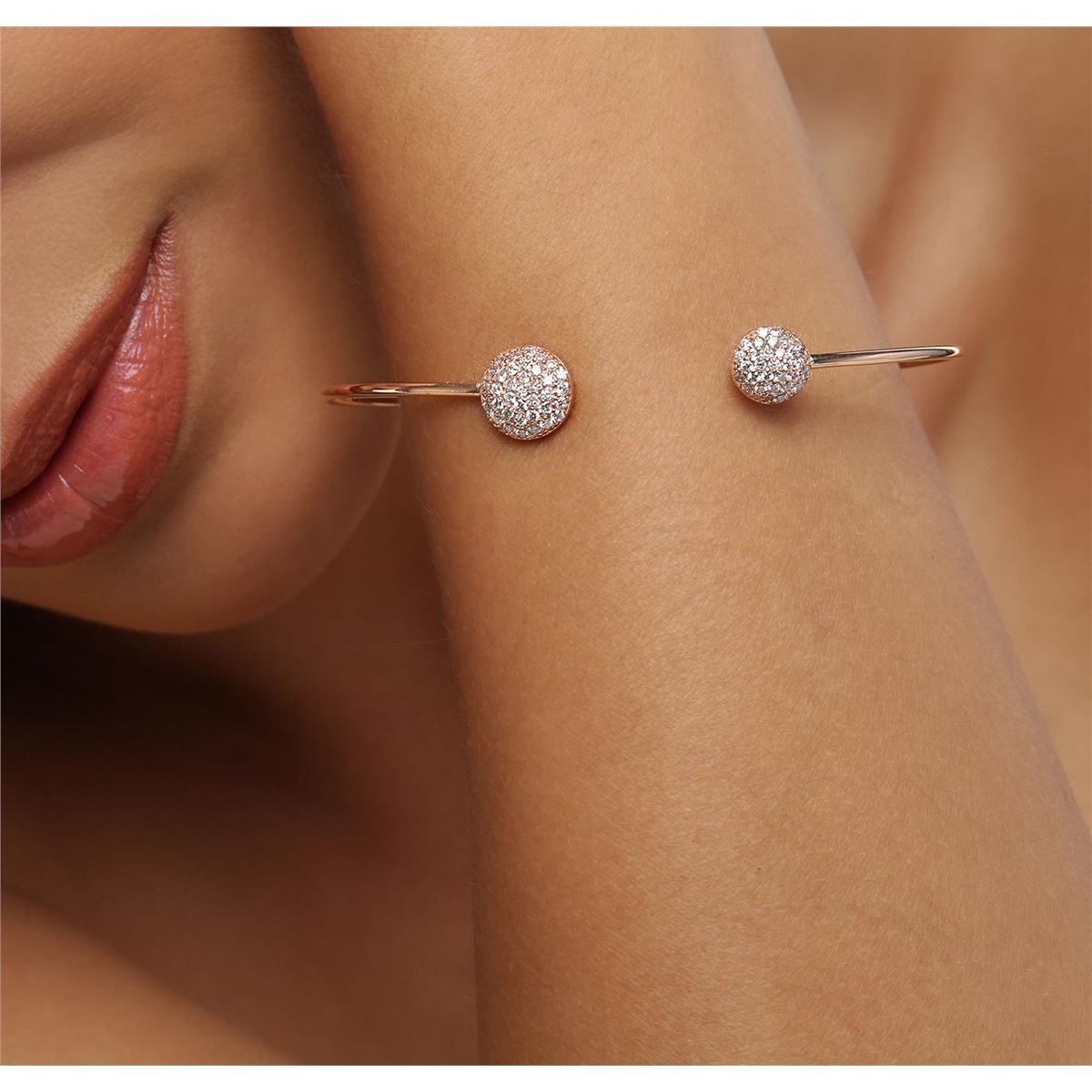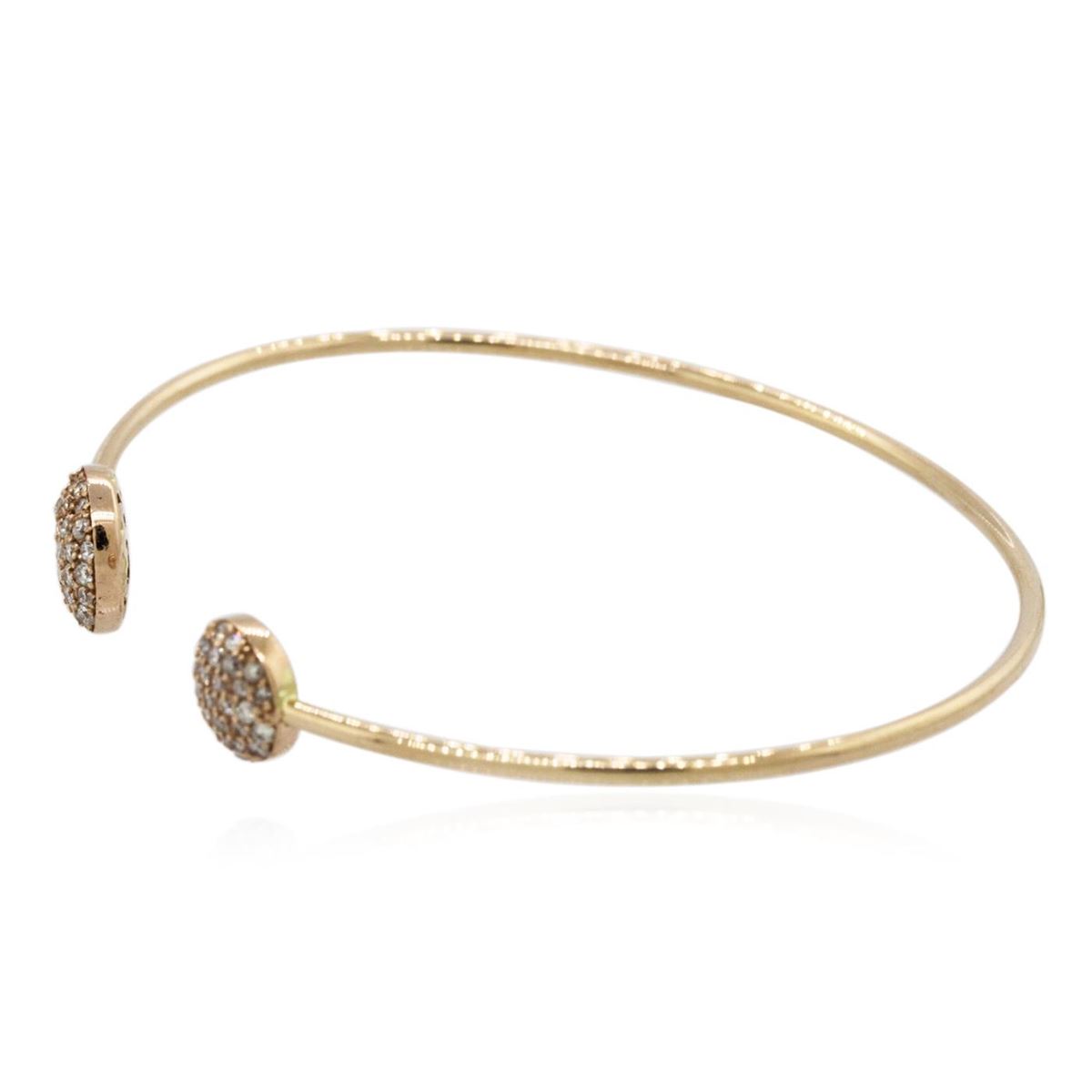 One electronically tested 14KT rose gold ladies cast diamond bangle bracelet with a bright polish finish. Condition is new. Containing: Sixty-Eight prong set round brilliant cut diamonds, measuring 1.30 - 1.30 x 0.78mm (depth est.) approximate total weight of 68 Stones = 0.54ct. Clarity: SI-1 to I-1. Color: I - J, Cut is Good. All diamonds are graded in the mounting, unless otherwise stated. Total Weight of Diamonds 0.54ct. Total Weight of Bangle Bracelet 5.20 grams. GGL Appraised at $3,140.00.