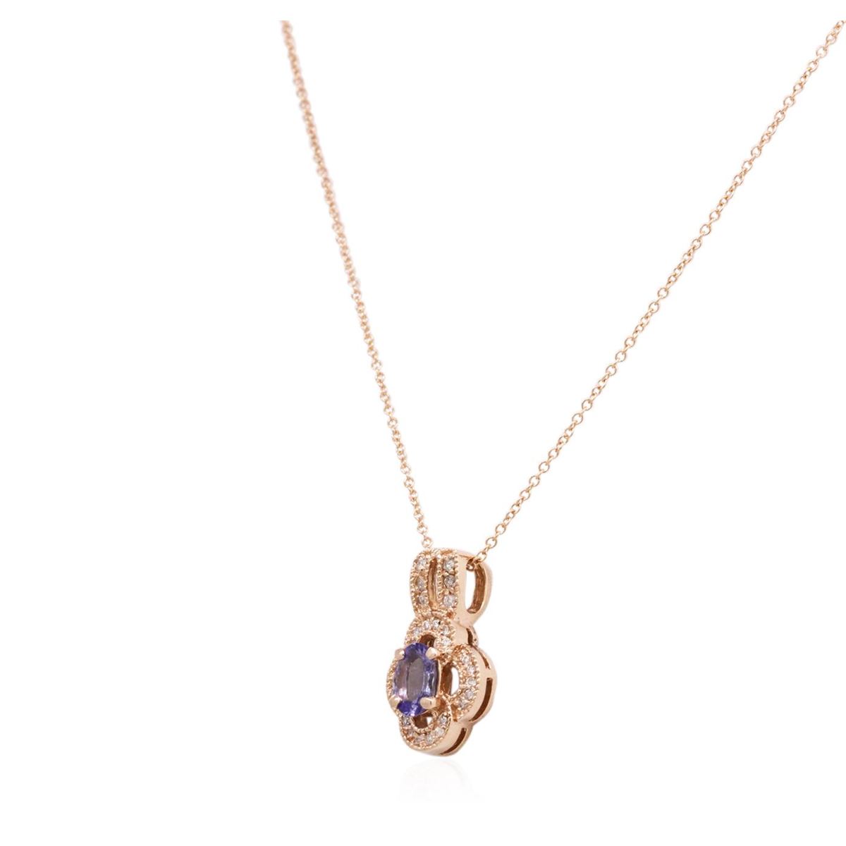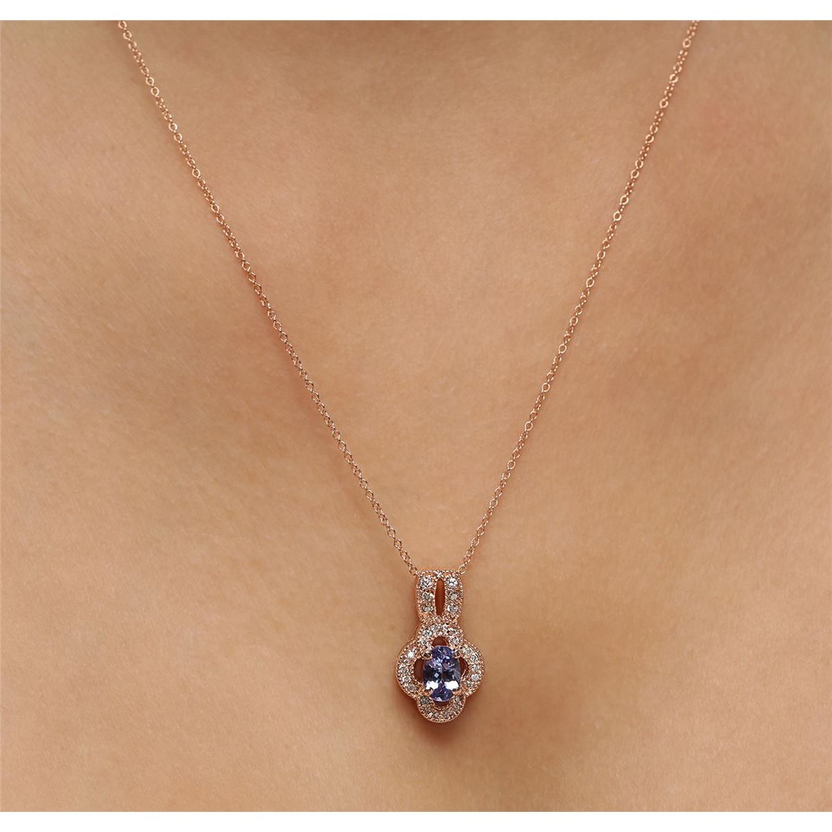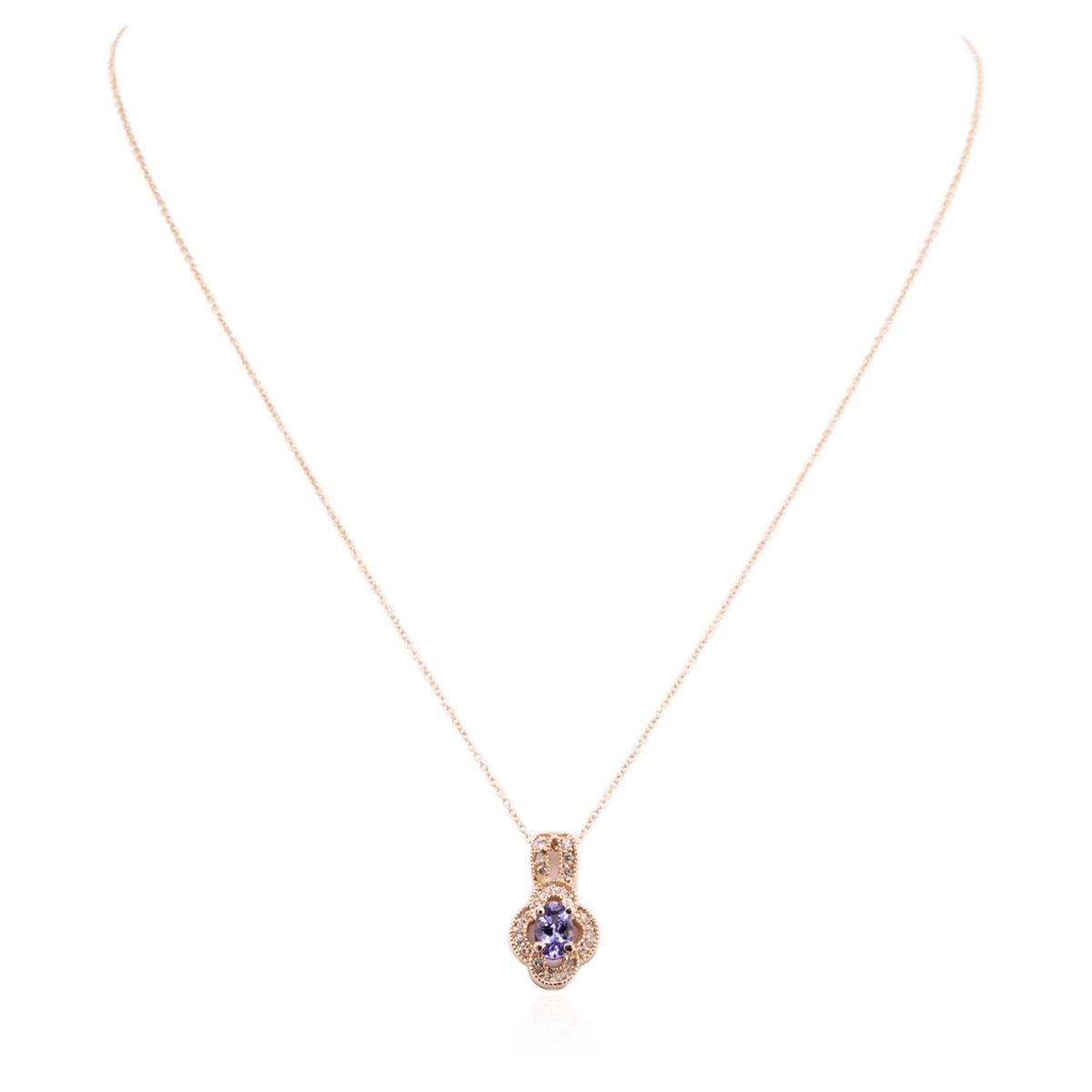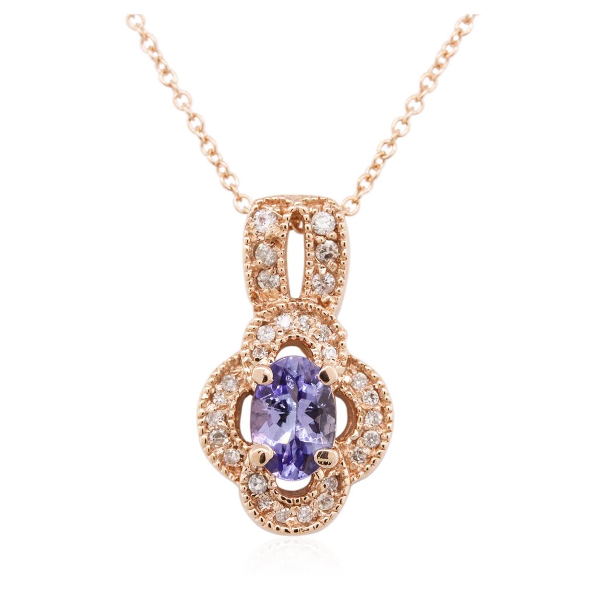 One pendant with chain featuring: 14KT rose gold weighing 3.14 grams containing one sapphire with a total weight of 0.68ct and round diamonds with a total weight of 0.16cts.