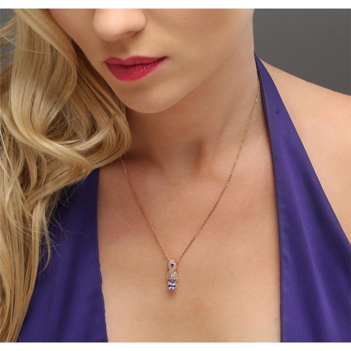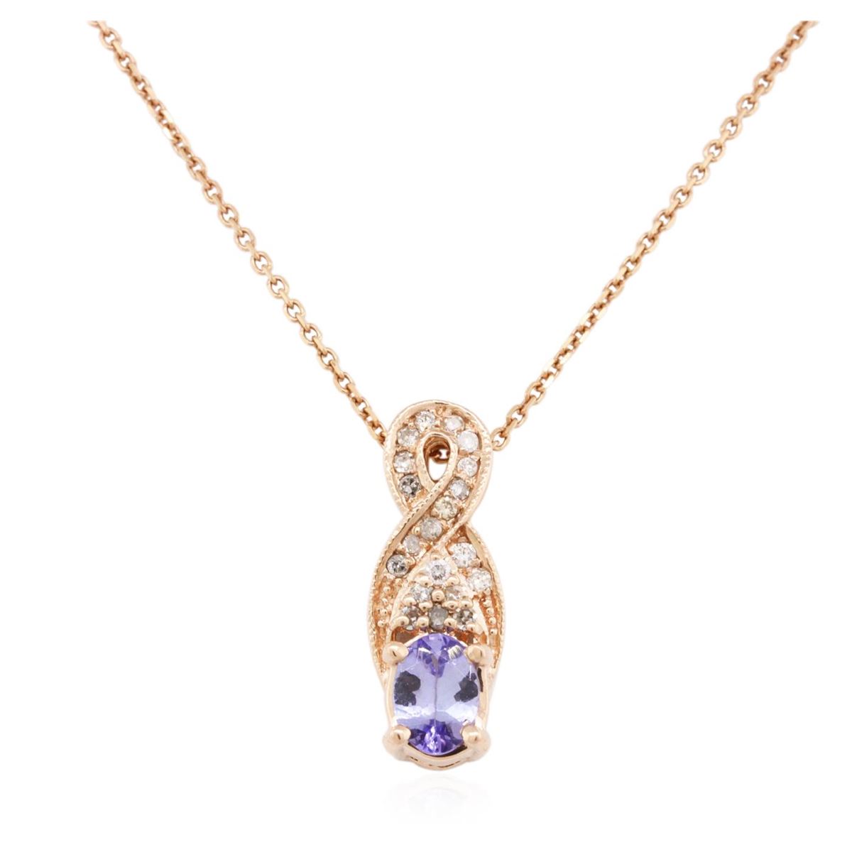 One pendant with chain featuring: 14KT rose gold weighing 3.66 grams containing one tanzanite with a total weight of 0.72ct and round diamonds with a total weight of 0.21cts.