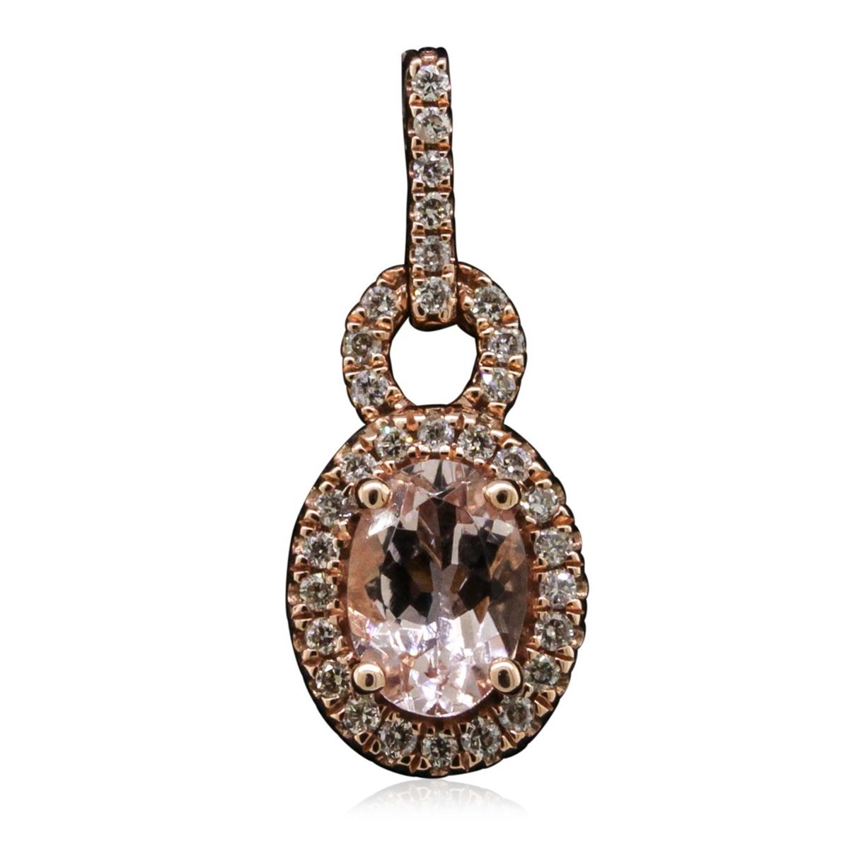 One pendant without chain featuring: 14KT rose gold weighing 1.73 grams containing one morganite with a total weight of 0.74ct and 32 round cut diamonds with a total weight of 0.17cts.