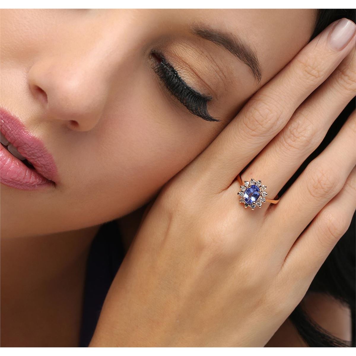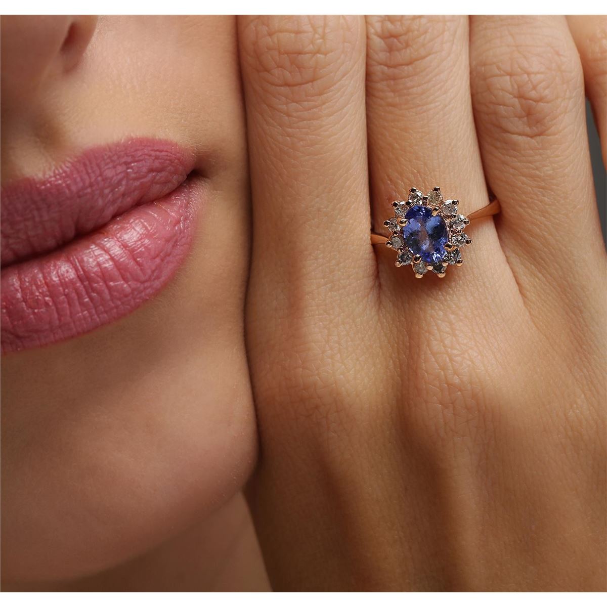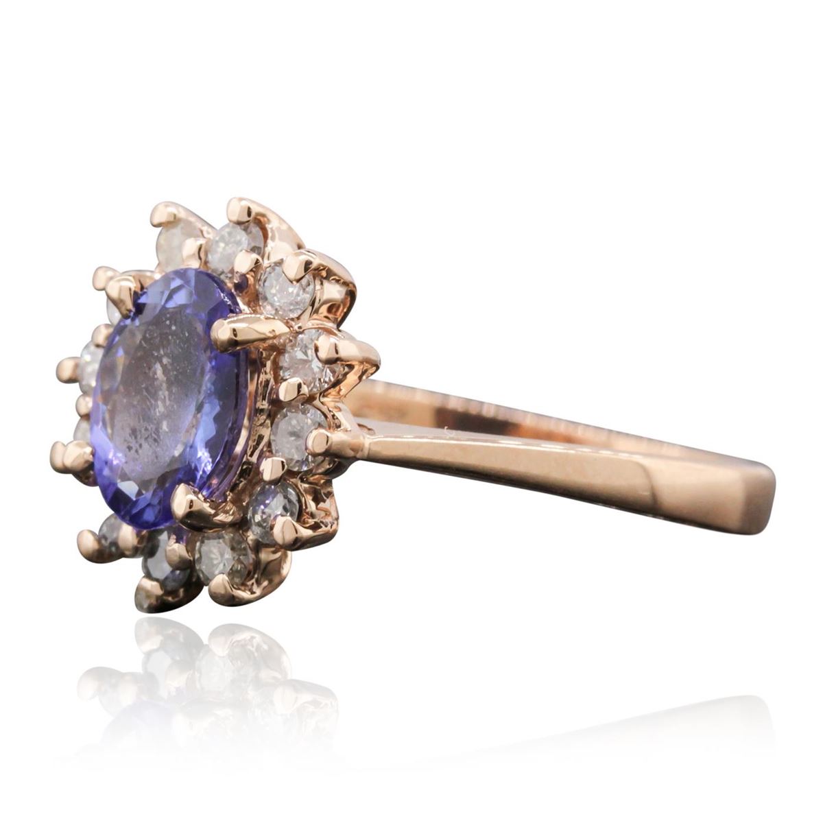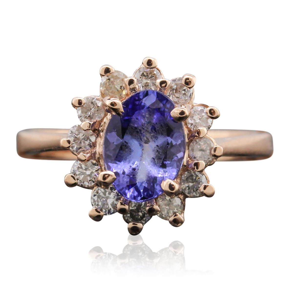 One ring featuring: 14KT Rose Gold with a total weight of 3.50 grams, Tanzanite with a total weight of 1.06ct, and Diamonds with a total weight of 0.36ctw.