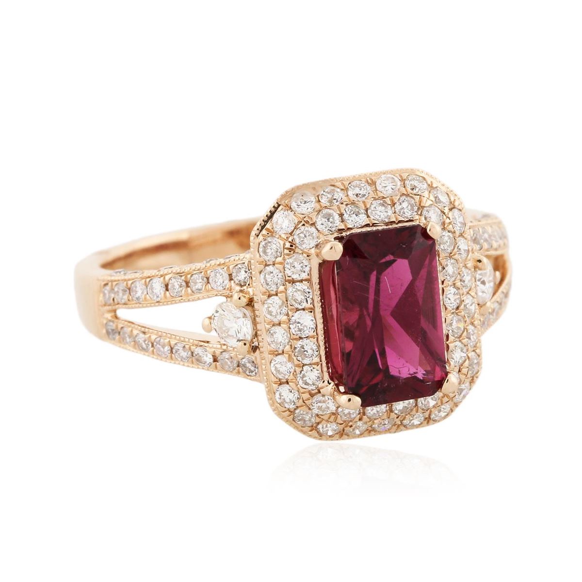 One ring featuring: 14KT rose gold weighing 4.00 grams containing one tourmaline center stone with a total weight of 1.07ct and diamonds with a total weight of 0.82ct.