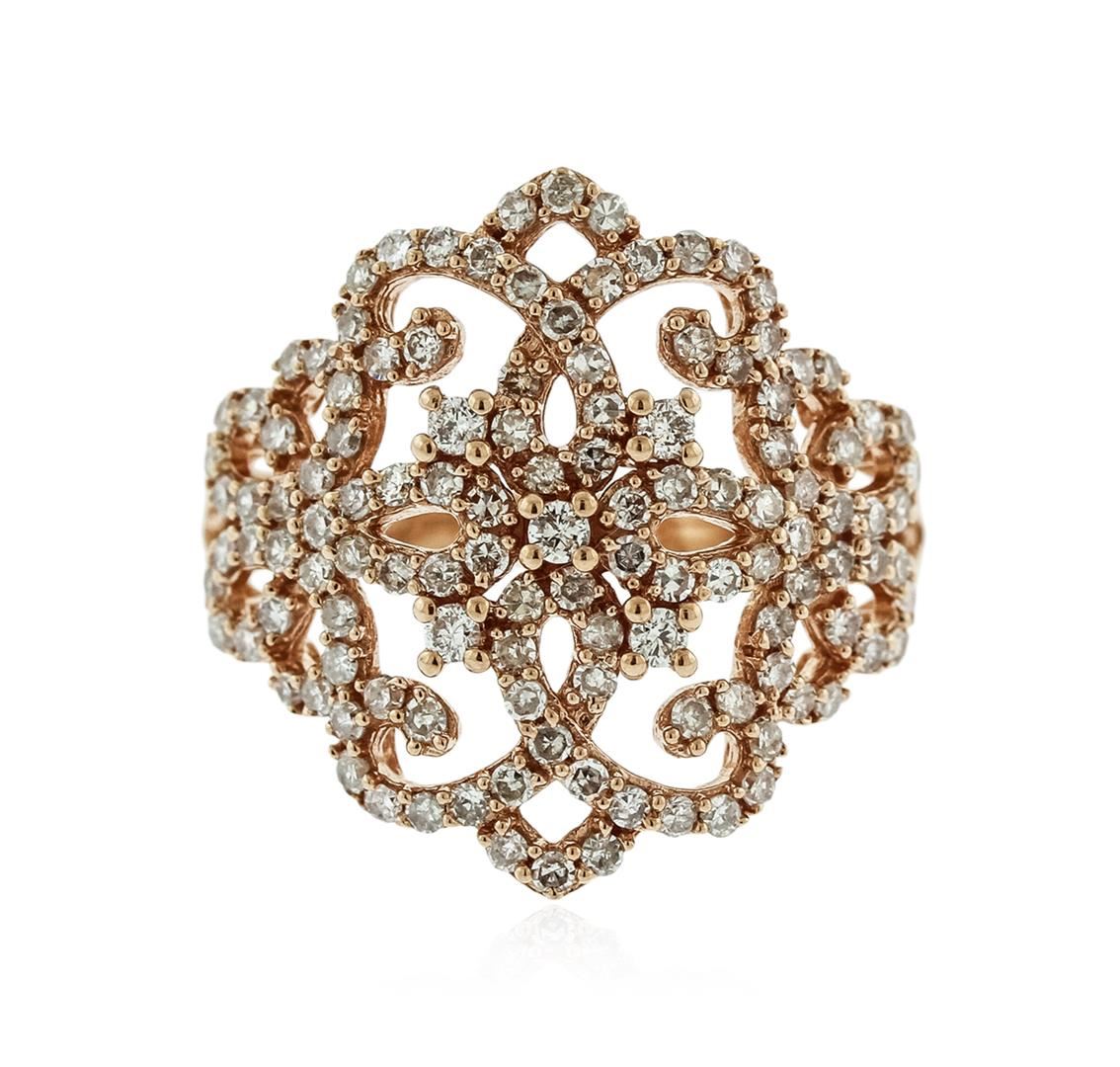 One ring featuring: 14KT rose gold weighing 3.80 grams containing diamonds with a total weight of 1.10ct.