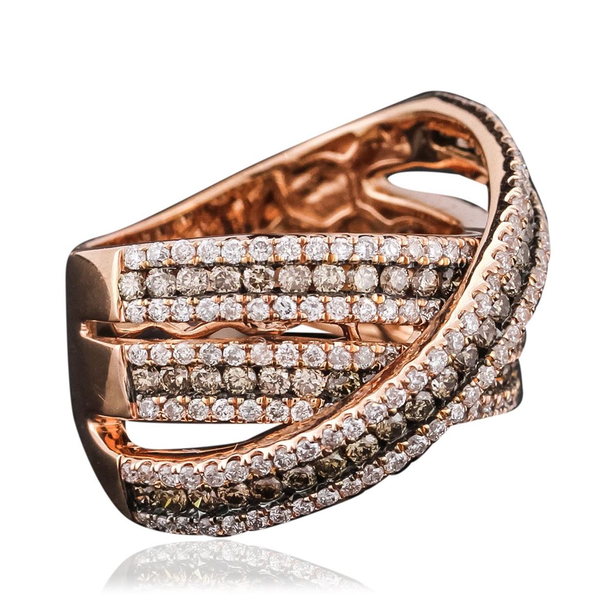 One electronically tested 14KT rose gold ladies cast diamond ring with a tapered shank with a bright polish finish. Identified with markings of "14K". Condition is new. Containing: One Hundred Seventy-Four prong set single cut diamonds, measuring 1.00 - 1.00 x 0.60mm (depth est.) approximate total weight of 174 Stones = 0.63ct. Clarity: I-1 to I-3. Color: J - K, Cut is Good. Sixty-Eight prong set round brilliant cut diamonds, measuring 1.50 - 1.50 x 0.90mm (depth est.) approximate total weight of 68 Stones = 0.84ct. Clarity: SI-1, Cut is Good. All diamonds are graded in the mounting, unless otherwise stated. Total Weight of Diamonds 1.46ct. Total Weight of Ring 8.30 grams. GGL Appraised at $7,570.00.