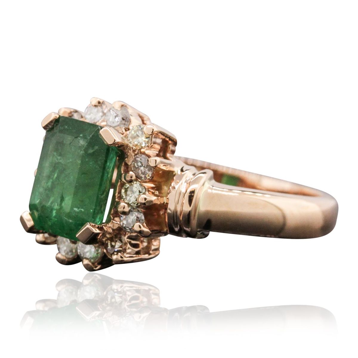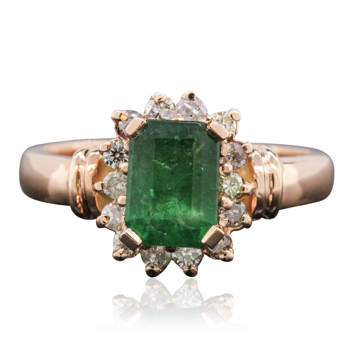 One ring featuring: 14KT rose gold with a total weight of 5.12 grams, emerald with a total weight of 1.51ct, and diamonds with a total weight of 0.35ctw.