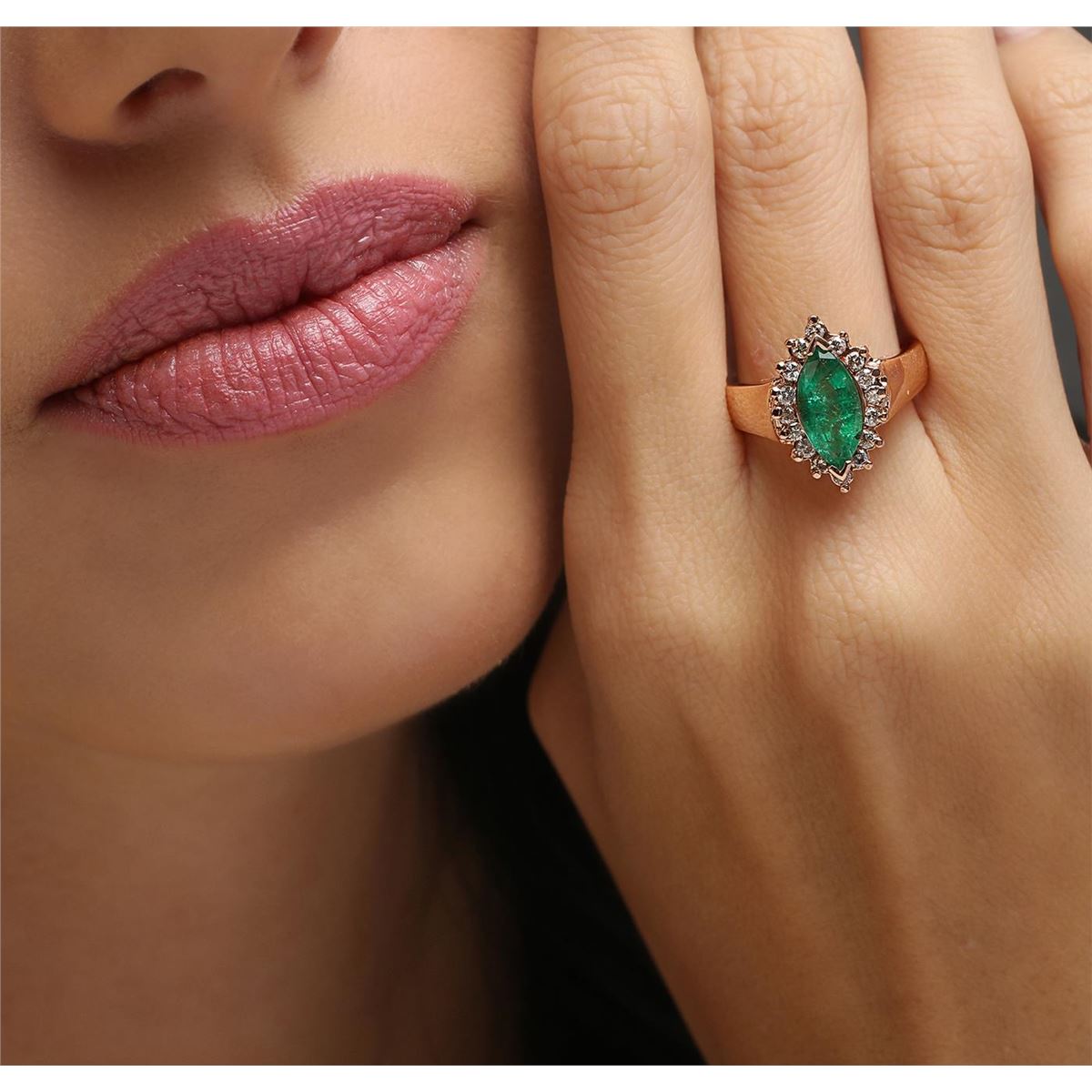 One ring featuring: 14KT rose gold with a total weight of 7.12 grams, emerald with a total weight of 1.59ct, and diamonds with a total weight of 0.43ctw.