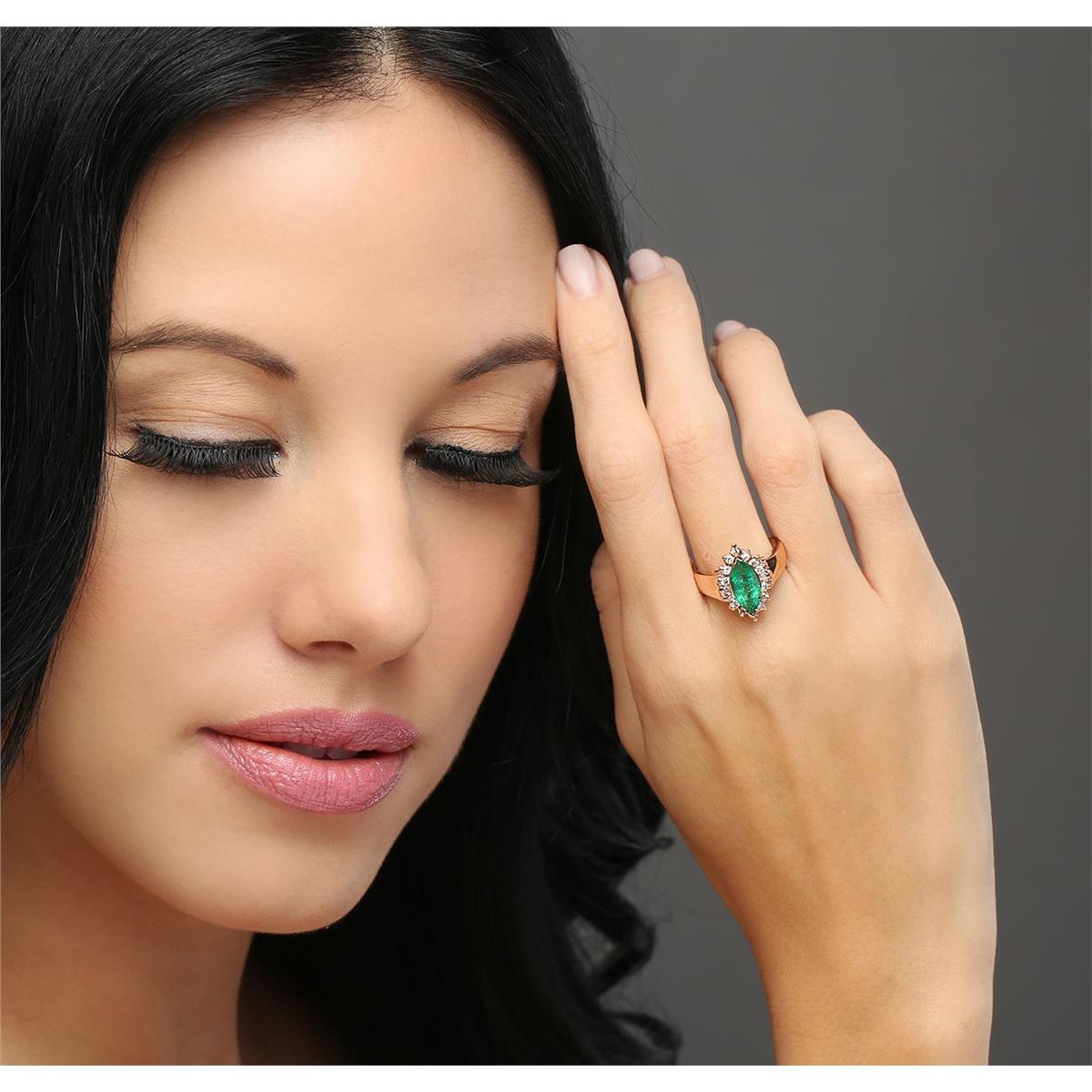 One ring featuring: 14KT rose gold with a total weight of 7.12 grams, emerald with a total weight of 1.59ct, and diamonds with a total weight of 0.43ctw.
