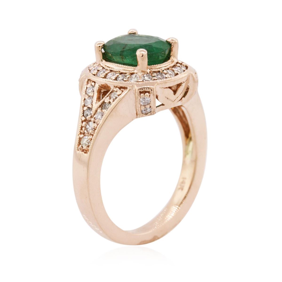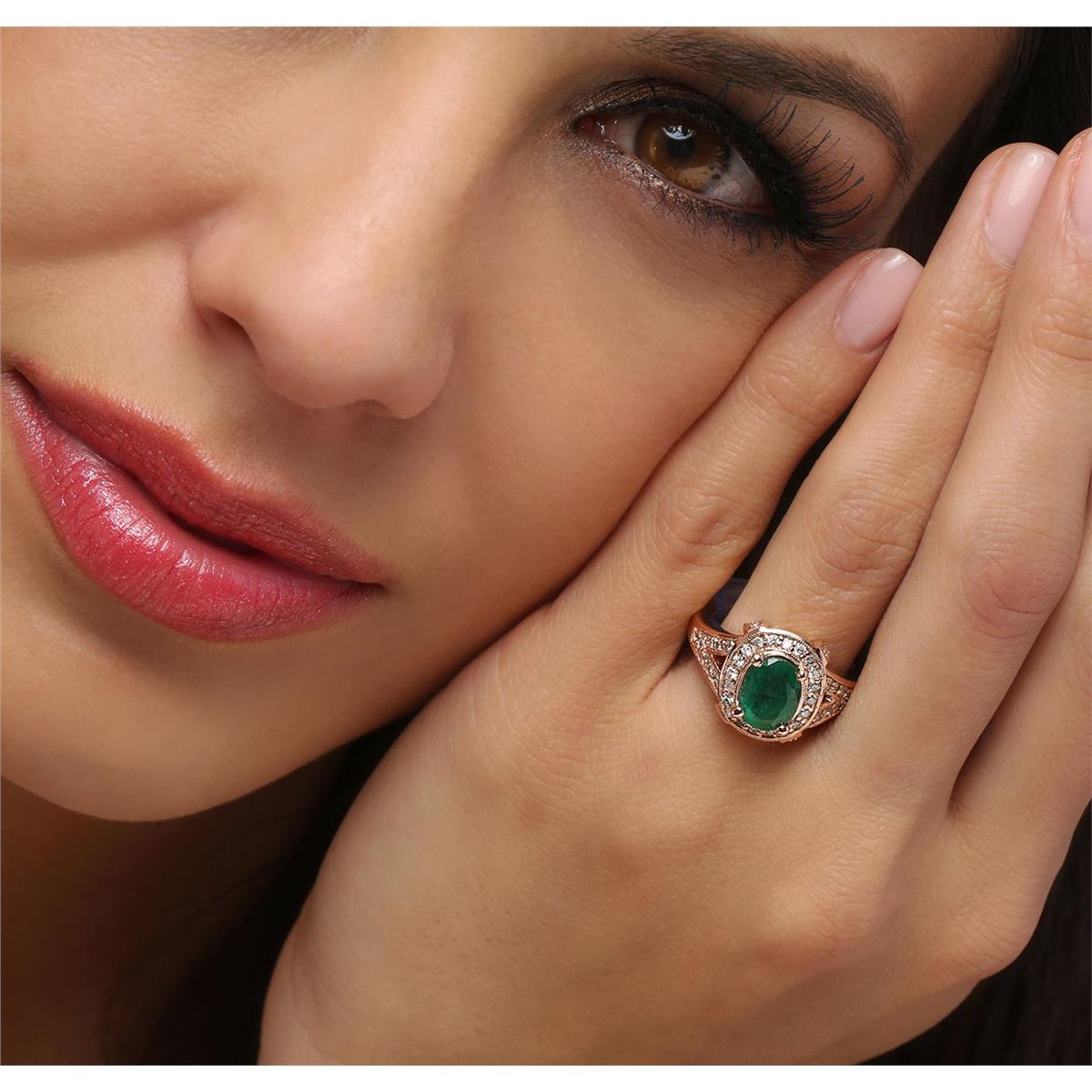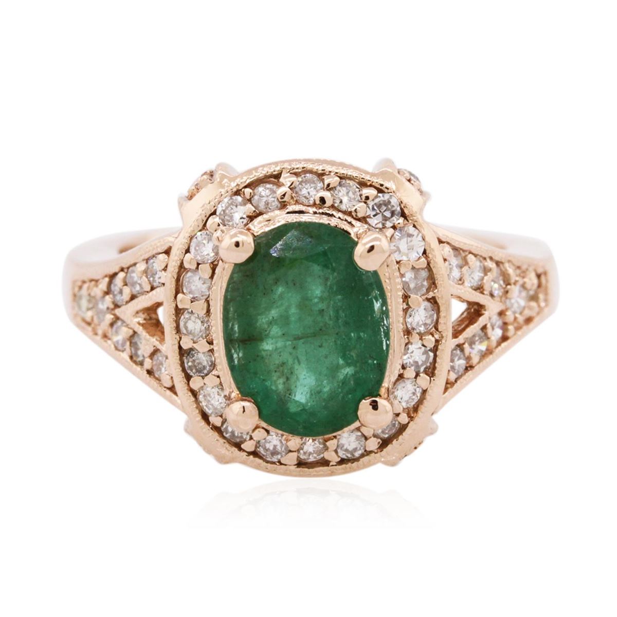 One ring featuring: 14KT rose gold weighing 7.52 grams containing one emerald center stone with a total weight of 1.76ct and round diamonds with a total weight of 0.54cts.