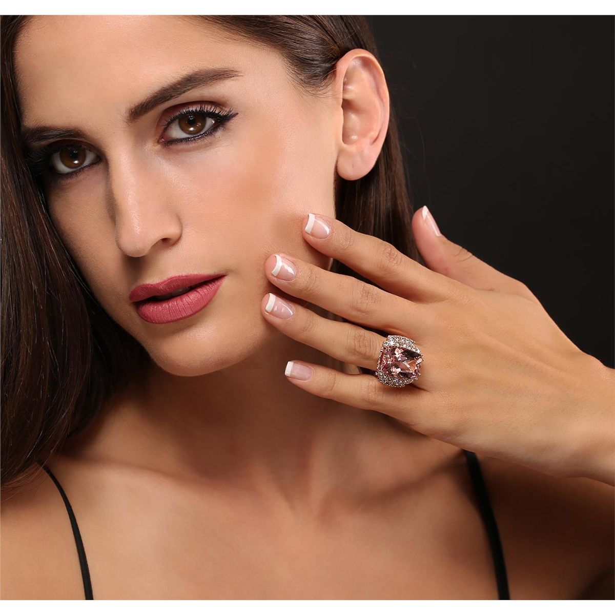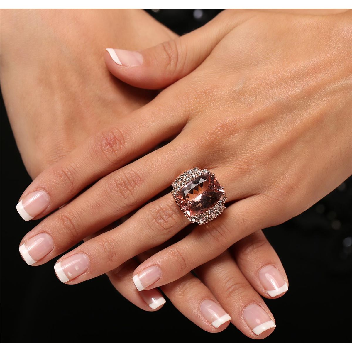 One electronically tested 14KT rose gold ladies cast morganite and diamond ring with a bright polish finish. Condition is new, good workmanship. The featured morganite is supported by diamond set stepped shoulders and completed by a four and one-half millimeter wide band. Identified with markings of "K14". Containing: One prong set rectangular cushion modified brilliant cut natural morganite, measuring 17.88 x 13.04 x 8.30mm, exact weight 13.01ct., type I Clarity is eye clean, type I, medium, very slightly brownish, orangy pink color, (GIA oPi 5/3), cut is good. Transmitting light with no distortion, transparent. GIA Colored Stone Grading Report attached. Graded loose prior to setting in the GIA Laboratory, Report # 1156736204. Twenty-four prong set round brilliant cut diamonds, measuring 2.30 - 1.30 x 1.08mm (depth est.) approximate total weight of 24 Stones = 0.61 ct. Faint brown secondary color throughout. Graded in the setting. Clarity VS-2 to SI-2. Color J - L. Total Weight of Colored Stones 13.01ct. Total Weight of Diamonds 0.61ct. Total Weight of Ring 13.80gm. AIG Appraised at $12,885.00.