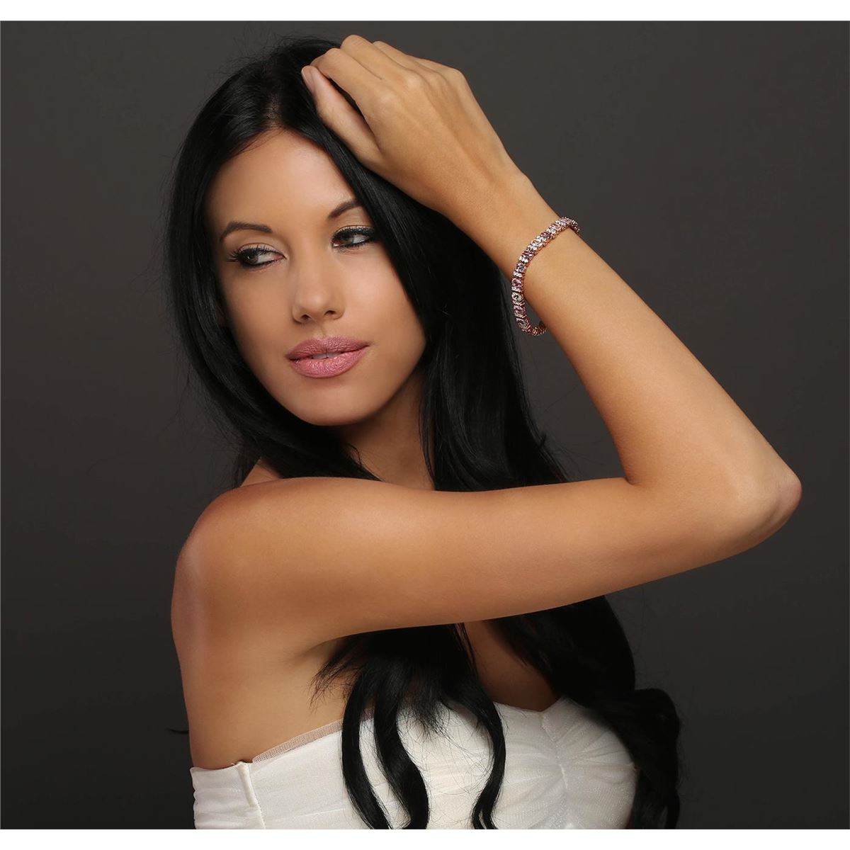 One electronically tested 14KT rose gold ladies combination cast & assembled bracelet with a bright polish finish. Measurements: 6.85" in length. Identified with markings of "14K". Condition is new. Containing: Twenty-one prong set oval modified brilliant cut natural multicolor sapphires, measuring 7.00 x 5.00 x 3.17mm, approximate total weight of 19.11ct., clarity is slightly included, type II, medium light, slightly grayish, purple white and pink color, (GIA PR 4/2), cut is good. Forty-Three prong set round brilliant cut diamonds, measuring 2.20 - 2.20 x 1.32mm (depth est.) approximate total weight of 43 Stones = 2.66ct. Clarity: I-1 to I-2. Color: I - J, Cut is Good. Colored gemstones are presumed to have been subjected to commonly used enhancement processes. All diamonds and colored gemstones are graded in the mounting, unless otherwise stated. Total Weight of Colored Stones 19.11ct. Total Weight of Diamonds 2.66ct. Total Weight of Bracelet 18.20 grams. GGL Appraised at $18,605.00.