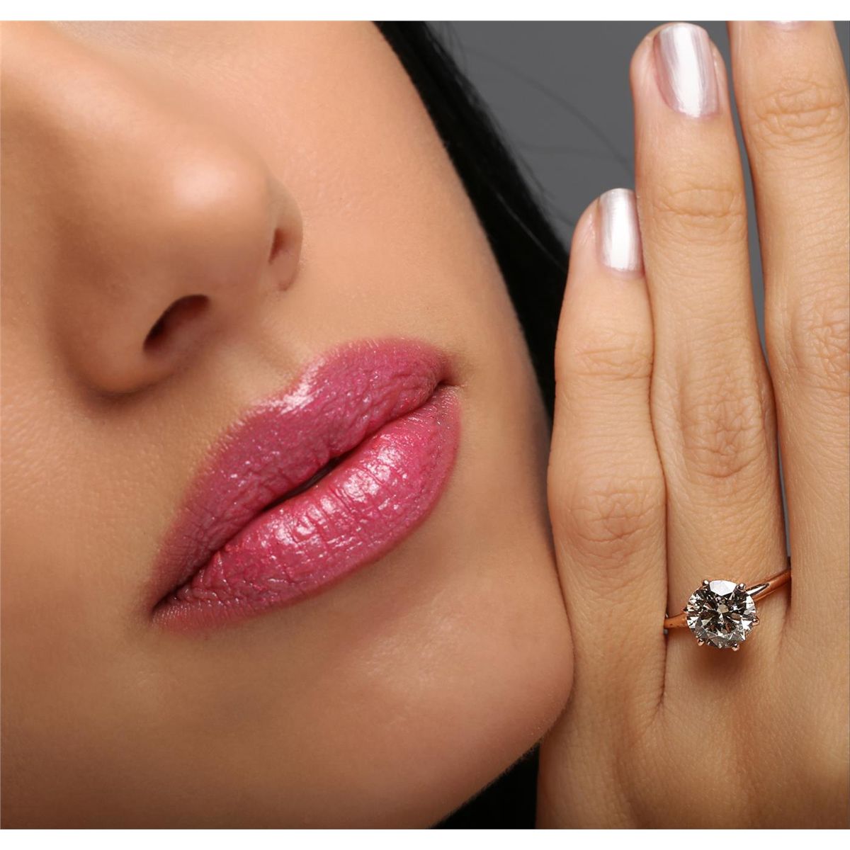 One solitaire ring featuring: 14KT rose gold weighing 2.00 grams containing one center diamond with a total weight of 2.03ct.