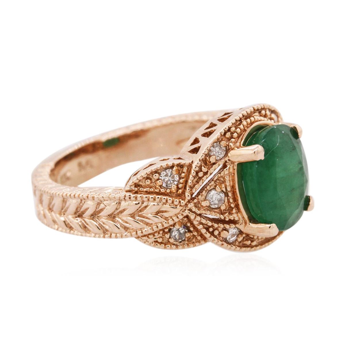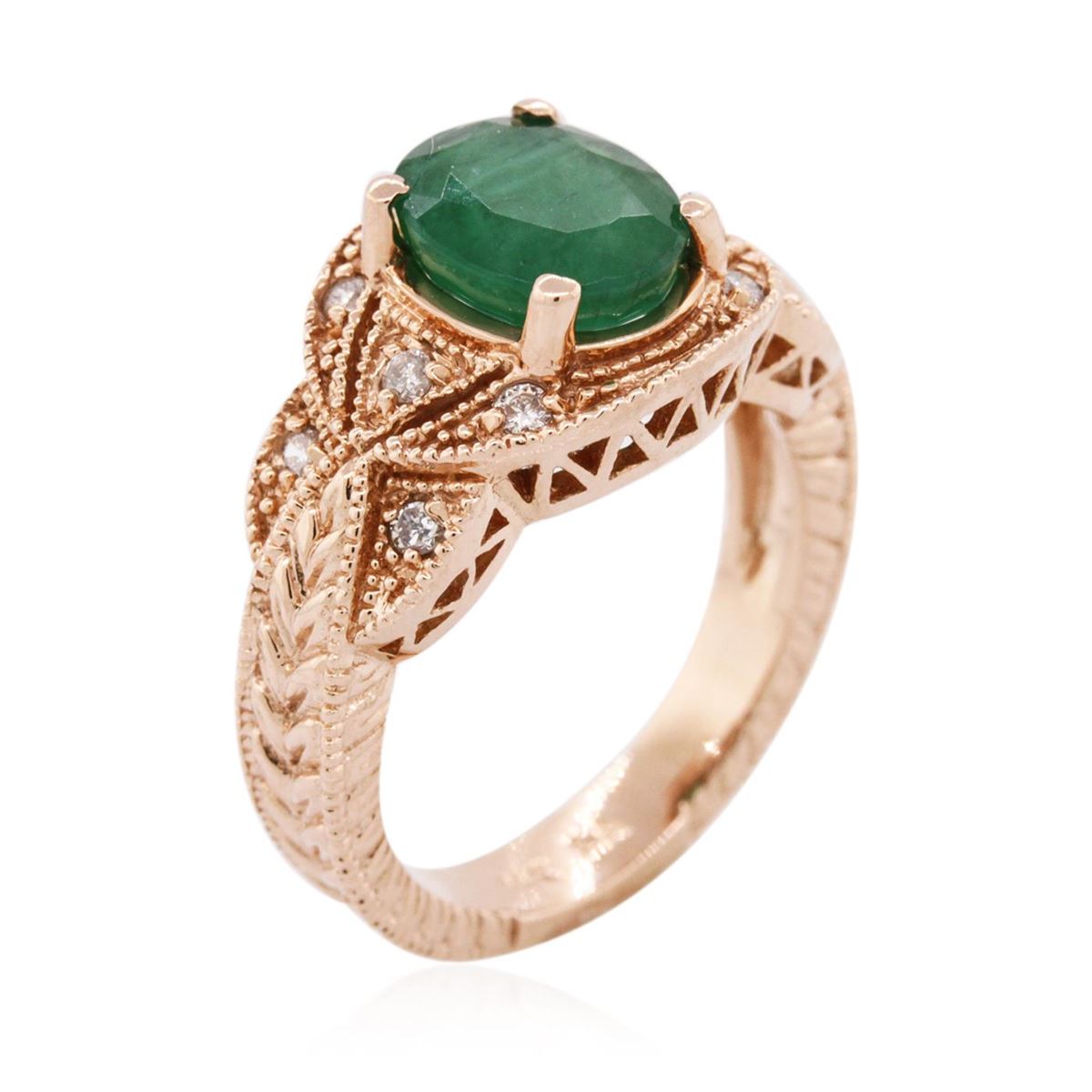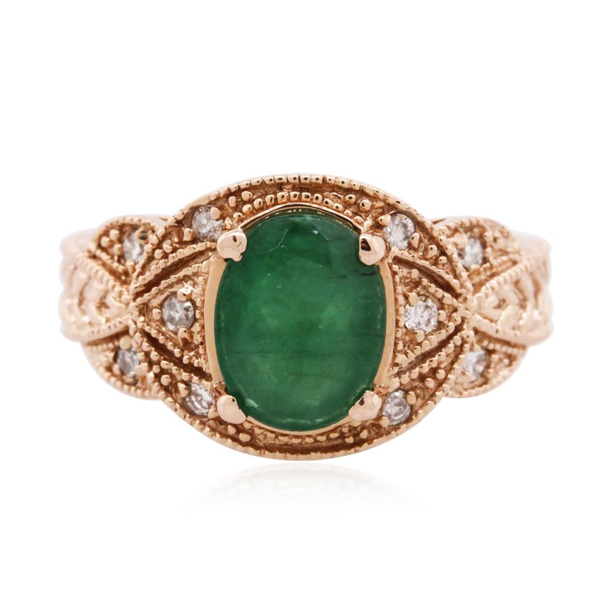 One ring featuring: 14KT rose gold weighing 7.49 grams containing one emerald center stone with a total weight of 2.08ct and round diamonds with a total weight of 0.16cts.