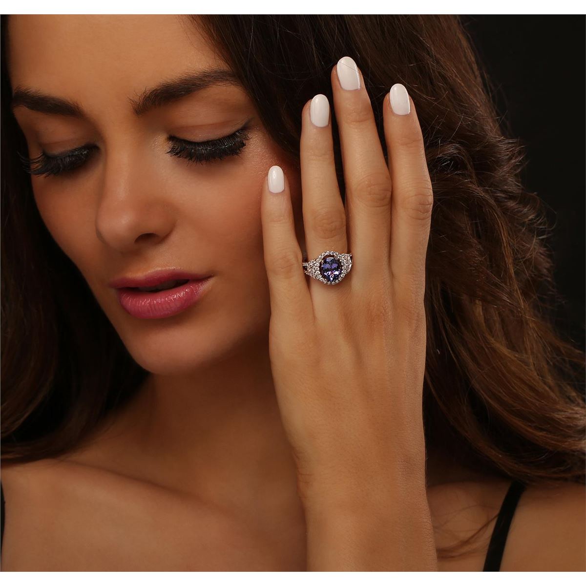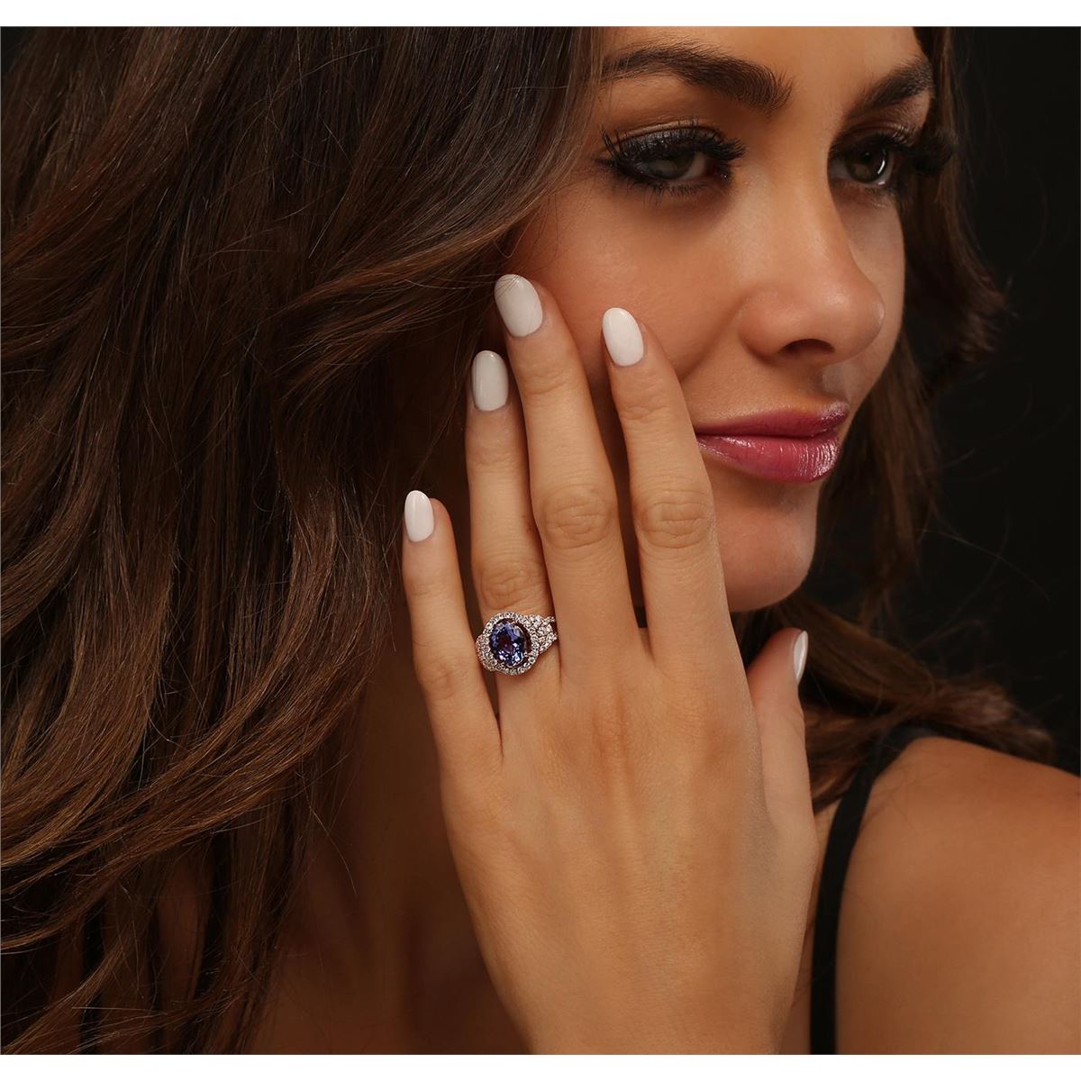 One electronically tested 14KT rose gold Ladies combination cast & assembled ring with a bright polish finish. Condition is new. Identified with markings of "14K". Containing: One prong set oval modified brilliant cut natural tanzanite, measuring 9.80 x 7.80 x 4.87mm, approximate weight of 2.53ct., clarity is eye clean, type I, medium, moderately strong, bluish violet color, (GIA bV 5/4), cut is good. Colored gemstones are presumed to have been subjected to commonly used color/clarity enhancement processes. Fifty-Eight prong set round brilliant cut diamonds, measuring 2.00 - 1.50 x 1.05mm (depth est.) approximate. Total Weight of 58 Stones = 0.60ct. Clarity: I-1 to I-2. Color: I - J, Cut is Good. Total Weight of Colored Stones 2.53ct. Total Weight of Diamonds 0.60ct. Total Weight of Ring 5.10 grams. GGL Appraised at $6,385.00.