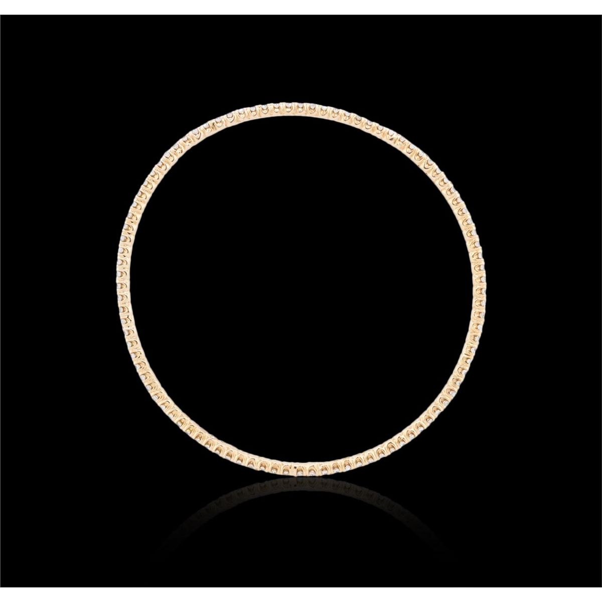 One electronically tested 14KT rose gold ladies cast diamond bangle with a bright polish finish. Seven and one-half inch wearable length bangle features a two and one-half millimeter wide continuous diamond ribbon. Condition is new, good workmanship. Containing: Ninety-Five prong set round brilliant cut diamonds, measuring 2.00 - 1.90 x 1.17mm (depth est.) approximate total weight of 95 Stones = 2.70ct. Graded in the setting. Clarity: VS-2 to SI-2. Color: H - J. Total Weight of Diamonds 2.70ct. Total Weight of Bangle 9.76 grams. AIG Appraised at $10,695.00.