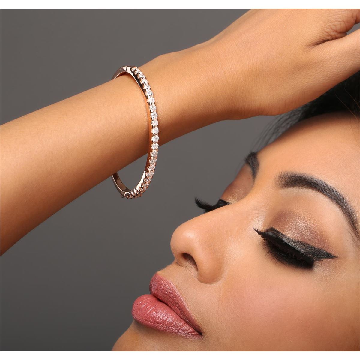 One electronically tested 14KT rose gold ladies combination cast & assembled bangle bracelet with a hidden box clasp with safety closer with a bright polish finish. Measurements: 2.50 x 2.00. Identified with markings of K14. Condition is new. Containing: Twenty-Four prong set round brilliant cut diamonds, measuring 3.20 - 3.20 x 1.92mm (depth est.) approximate total weight of 24 Stones = 2.88ct. Clarity: I-1 to I-2. Color: I - J, Cut is Good. All diamonds are graded in the mounting, unless otherwise stated. Total Weight of Diamonds 2.88ct. Total Weight of Bracelet 14.80 grams. GGL Appraised at $7,725.00.