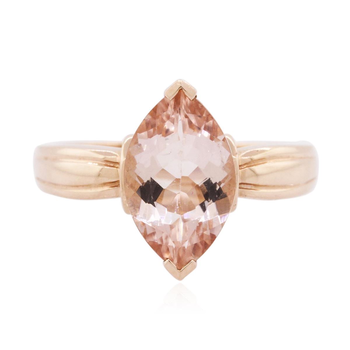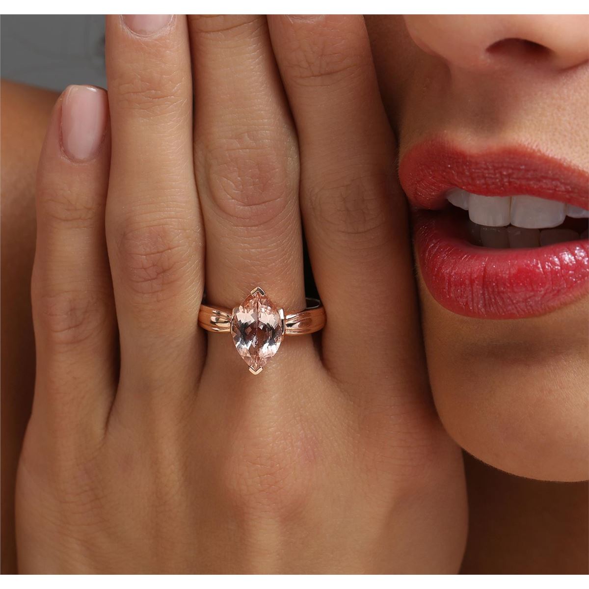 One solitaire ring featuring: 10KT rose gold weighing 3.90 grams containing one prong set marquise cut morganite with a total weight of 3.00ct.