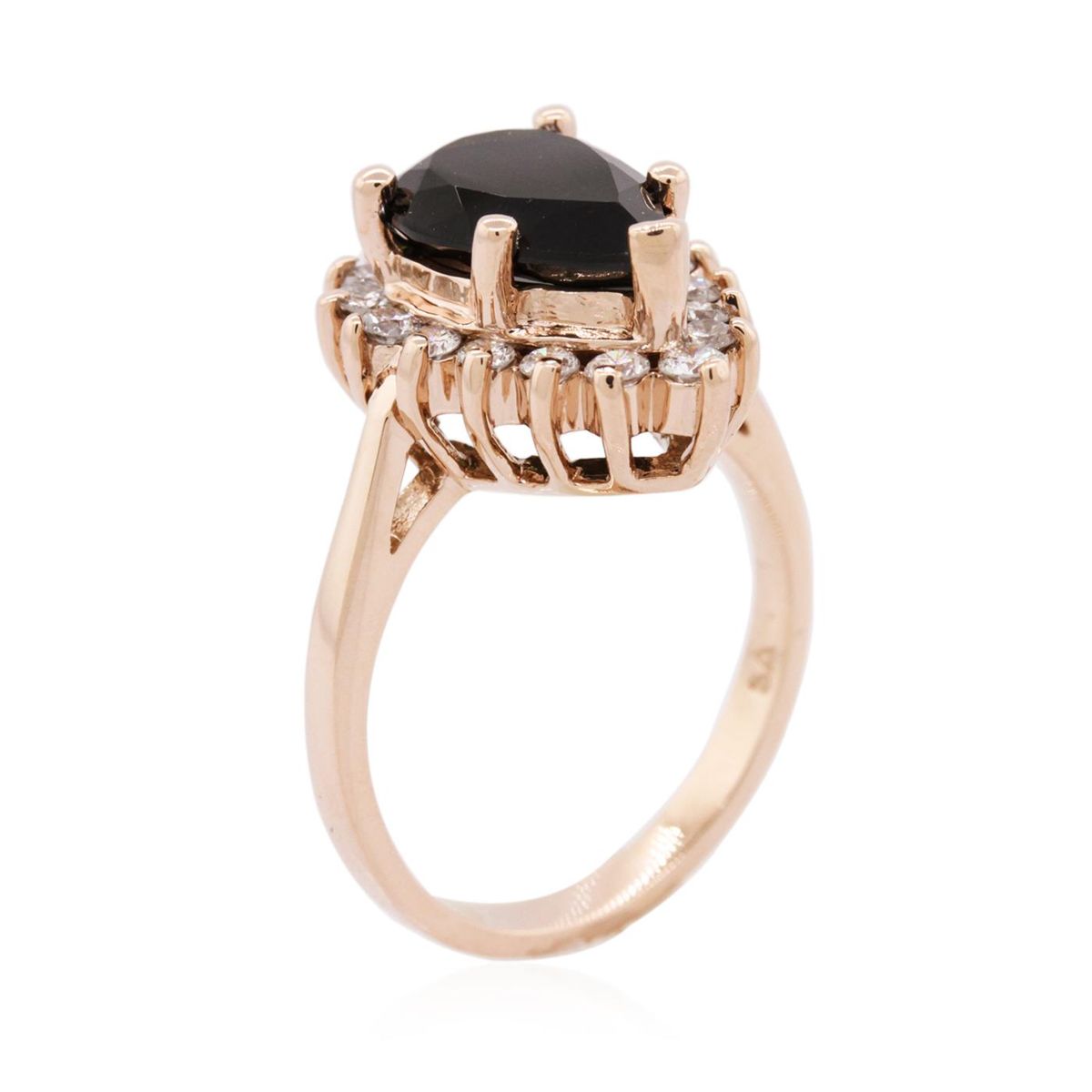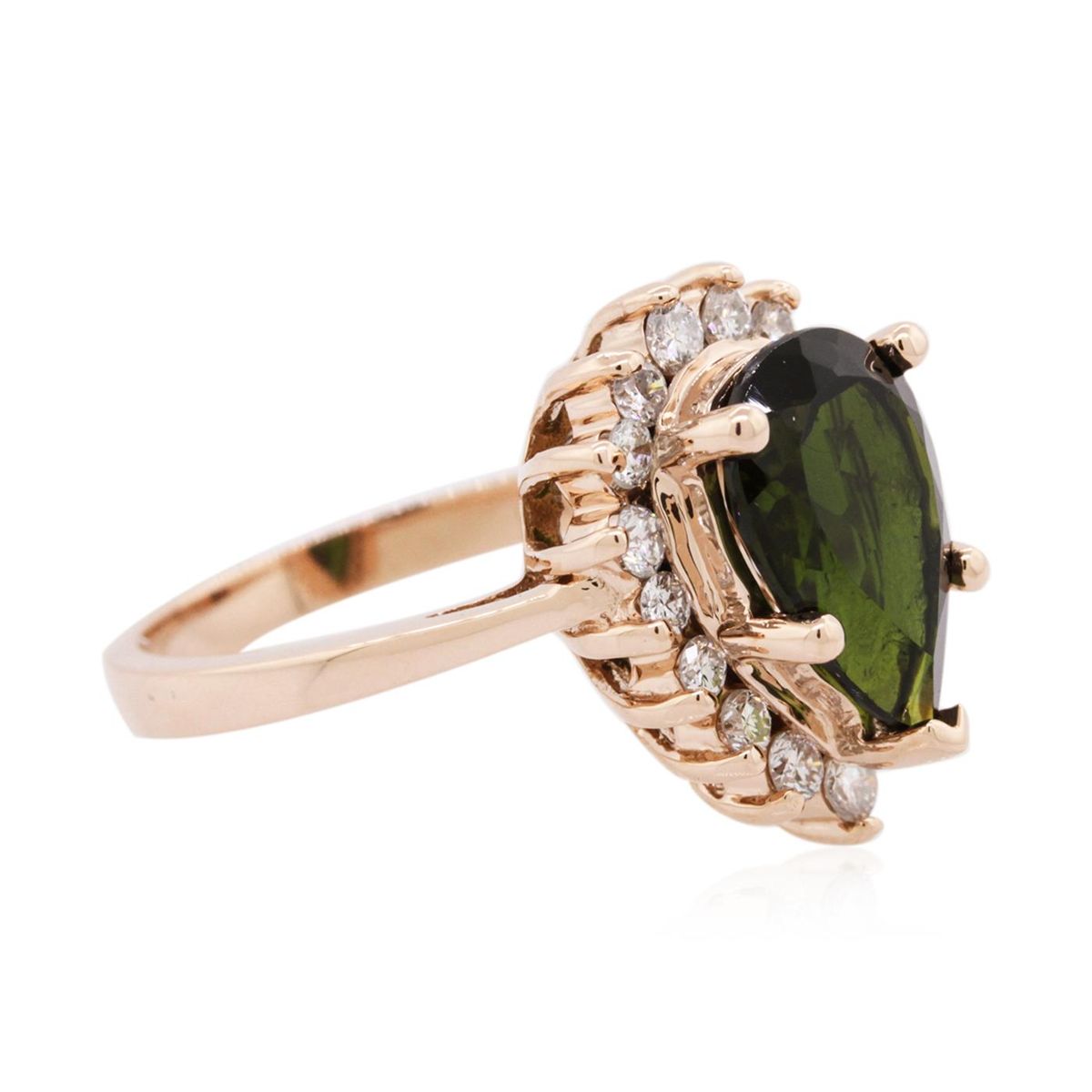 One ring featuring: 14KT rose gold weighing 6.44 grams containing one green tourmaline center stone with a total weight of 3.04ct and round diamonds with a total weight of 0.53cts.