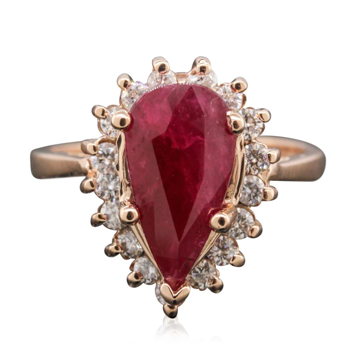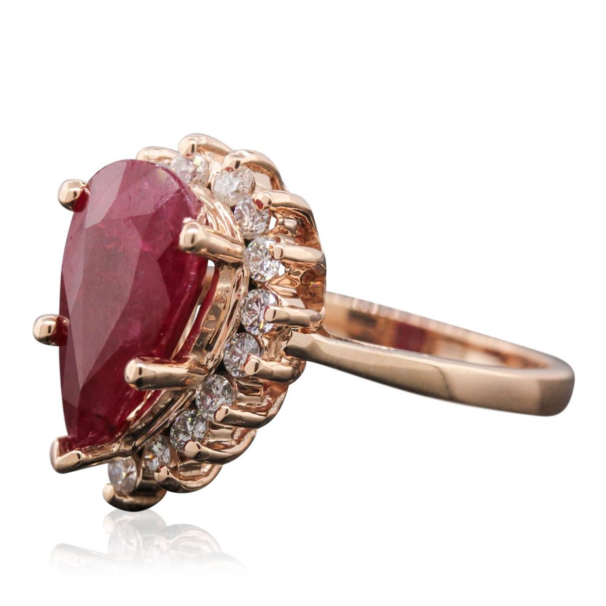 One ring featuring: 14KT Rose Gold with a total weight of 5.80 grams, Ruby with a total weight of 3.82ct, and Diamonds with a total weight of 0.51ctw.