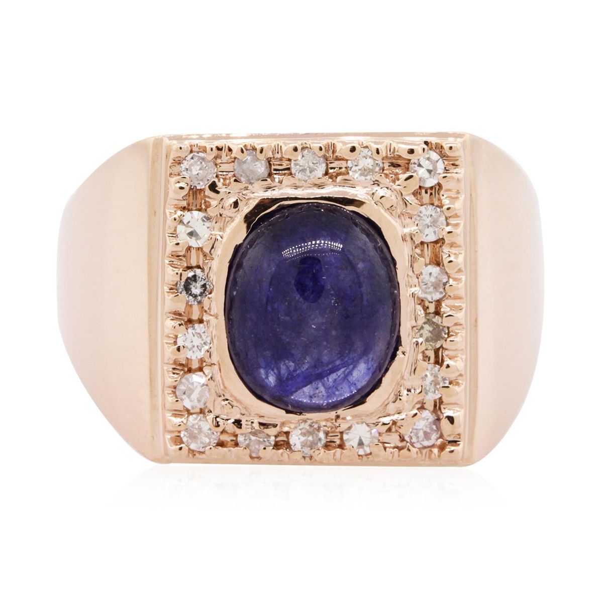 One ring featuring: 14KT rose gold weighing 12.97 grams containing one sapphire center stone with a total weight of 4.31ct and round diamonds with a total weight of 0.33cts.