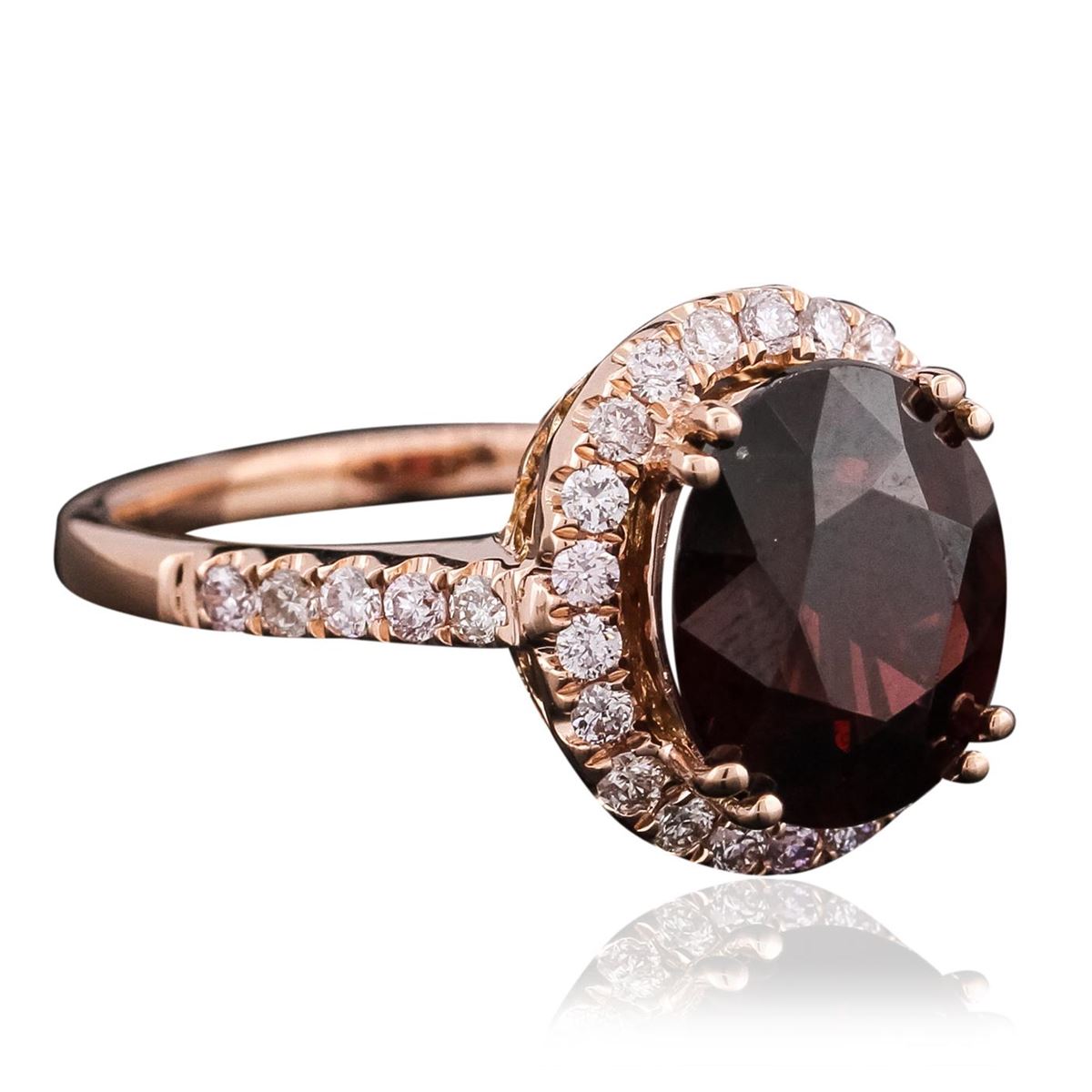 One ring featuring: 5.3 grams of 14KT rose gold, zircon with a total weight of 4.49ct, diamonds with a total weight of 0.52cts.